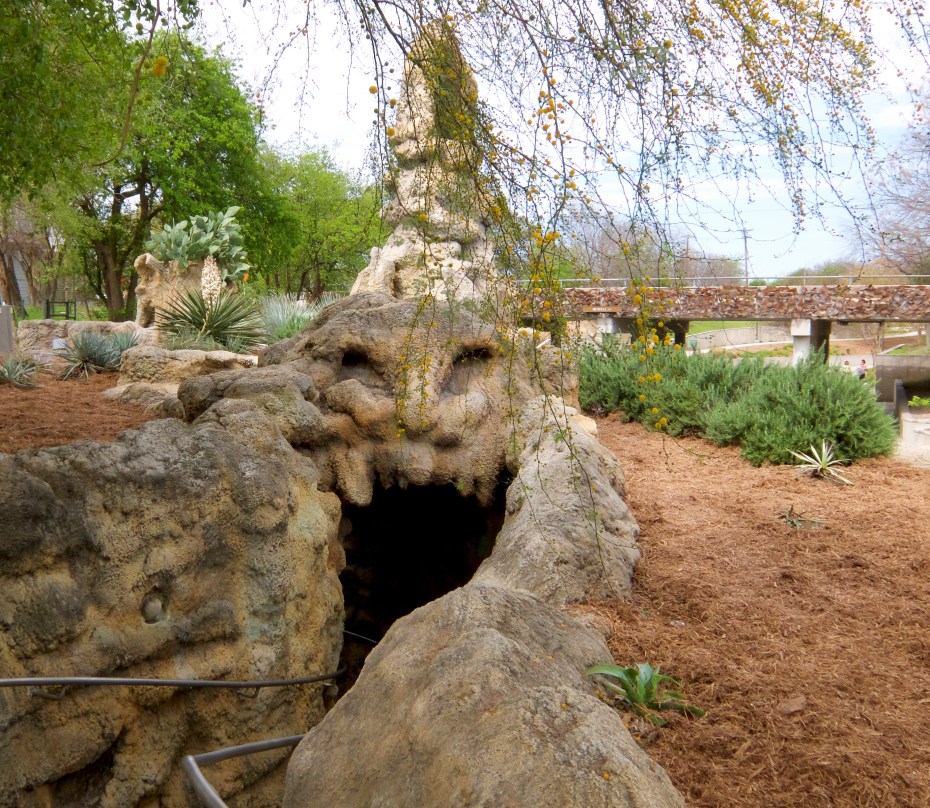 I love the art installations along the river. The first one we came to was “The Grotto,” a cave-like formation that also serves as access to the the Riverwalk from street level via the mouth of a stone jaguar.