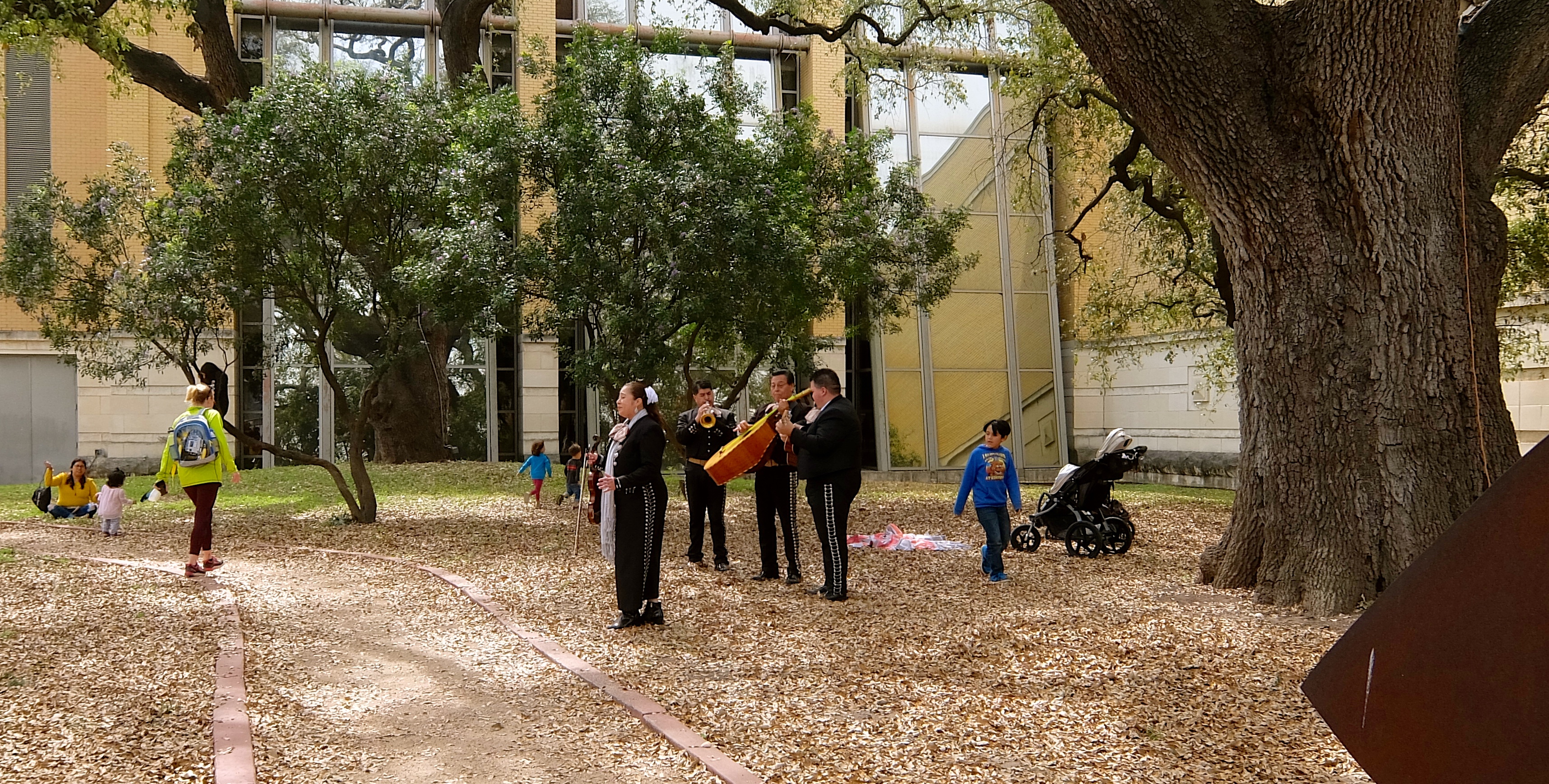 On the grounds of the Museum of Art, a mariachi band was performing for a family party.