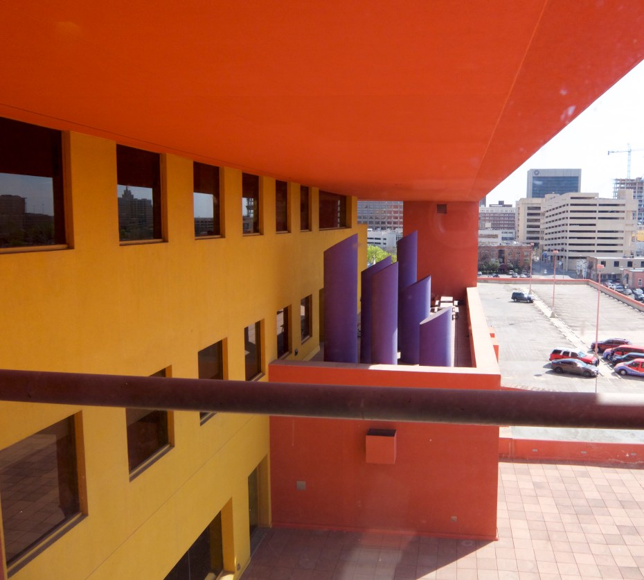 San Antonio’s Central Library is an interesting mix of colorful and industrial, artistic and utilitarian.