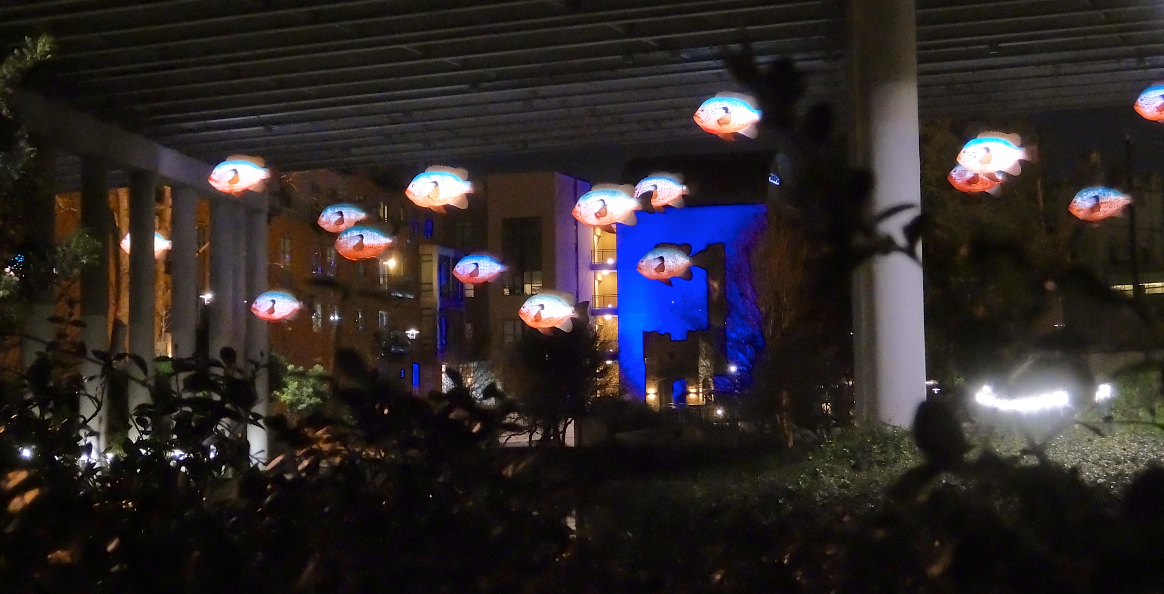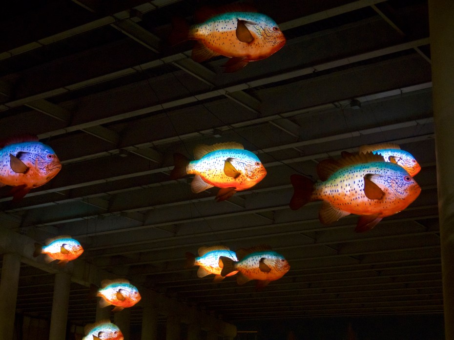 At night each fish is illuminated from within. Absolutely gorgeous.