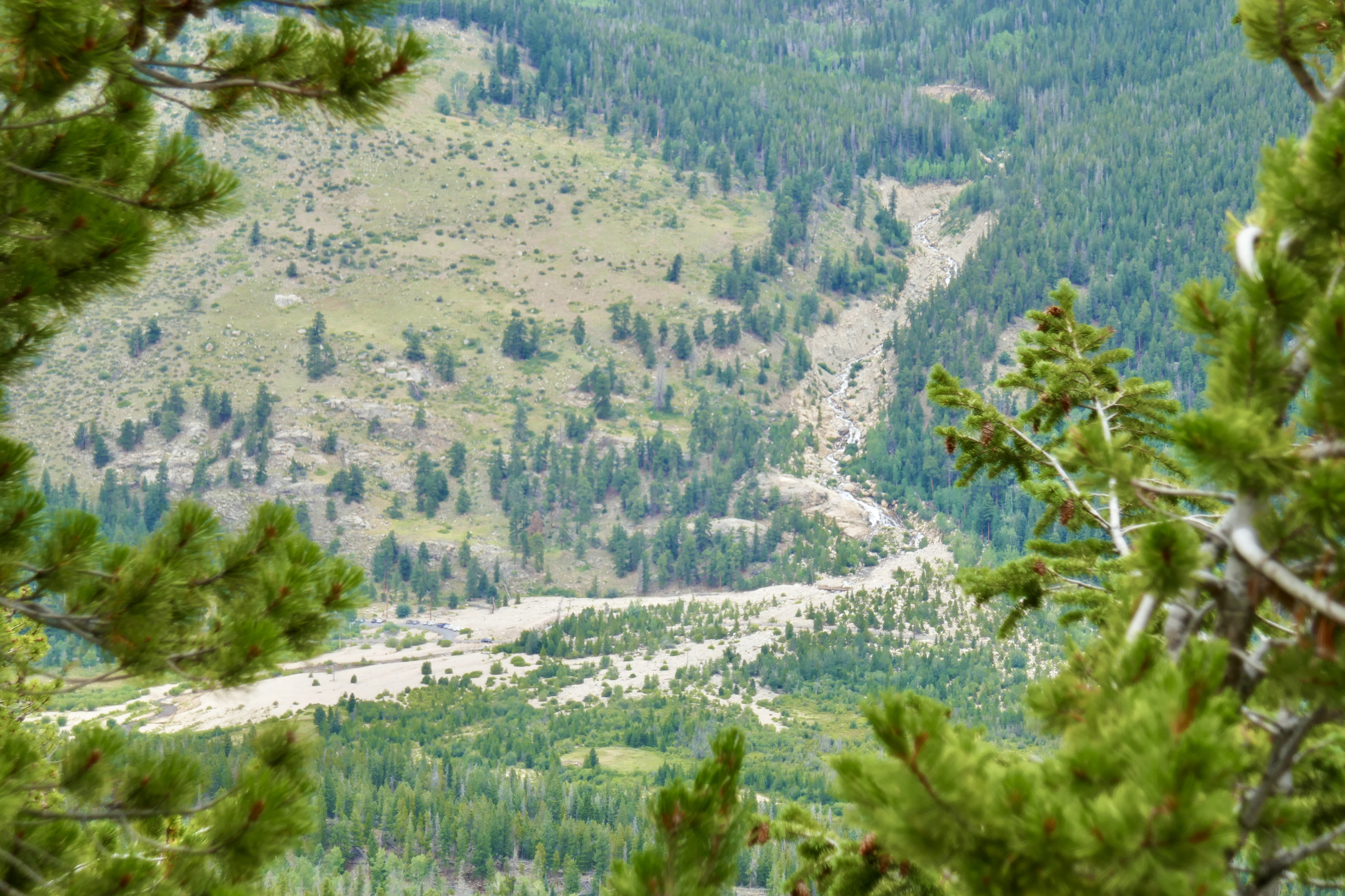 In mid-July of 1982, the dam failed due to neglect, dumping 674 acre-feet of water into the Roaring River. Lawn Lake emptied in half an hour, just an absolute tsunami. Four decades later you can still see the alluvial fan of rocks and debris that the floodwaters left behind when they poured into Horseshoe Park.