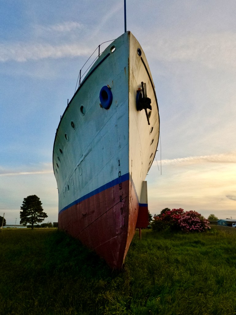 As we crossed into California, the landscape began to change. We had left The People’s Coast behind and were back in the land of billboards and shopping centers. We stopped to see a big ship that had once been the gift shop for a tropical-themed resort.