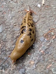 We took our time breaking camp, and dawdled to admire this absolute unit of a banana slug.