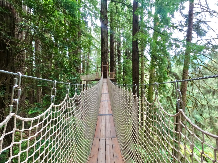 We weren’t at all sure what to expect there, but it was a pleasant surprise. Lots of great wood carvings, poetry, folk-style art, and a wonderful canopy trail that lets you walk through the redwoods 50 to 100 feet above the forest floor.