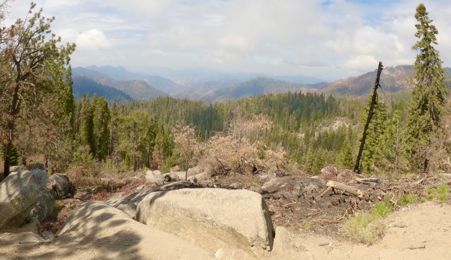 A prescribed burn was smoking in the distance, so I don’t know how much of the damage we saw was from last year’s KNP Complex Fire and how much was controlled burn-off.