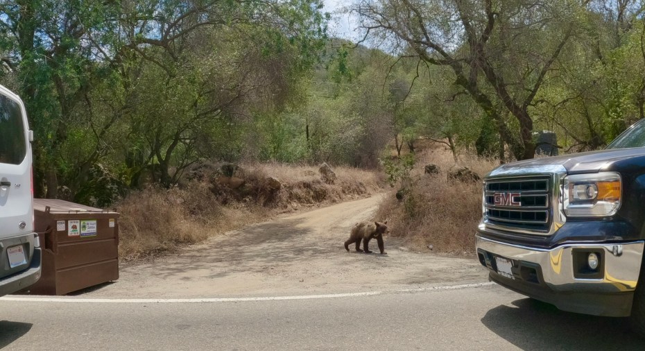 So we didn’t get to see the mighty General Sherman tree or do the other things we had planned in those parks, but we did get to marvel at some really big Sequoias, appreciate the majesty of the Sierra Nevadas and finally see some bears in the wild. We were satisfied.