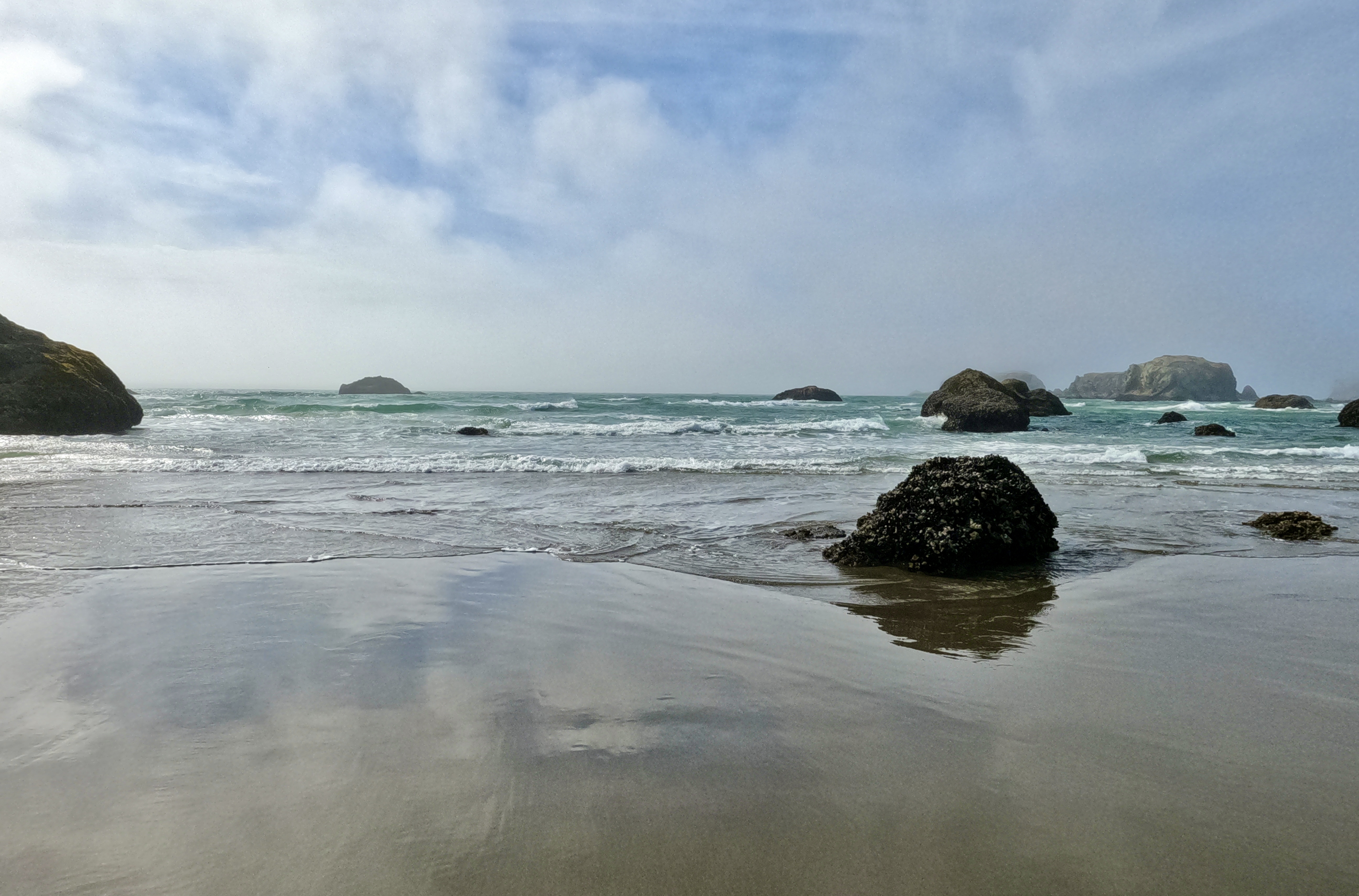 In Bandon, Oregon we visited Face Rock Creamery for some really good ice cream, and then headed down to Bandon beach to check out the famous rock formations and tide pools. We arrived at low tide, a great time to see both.
