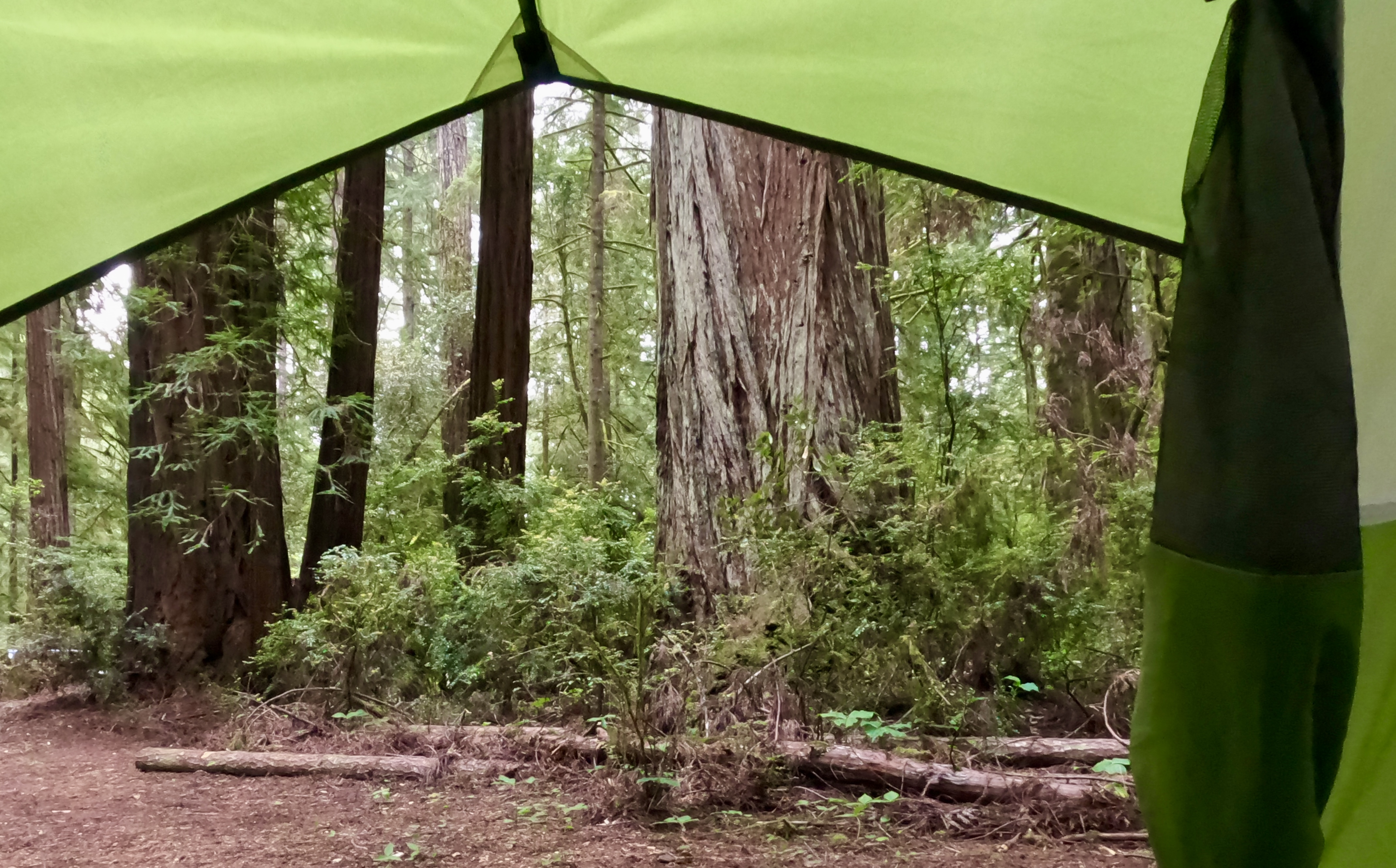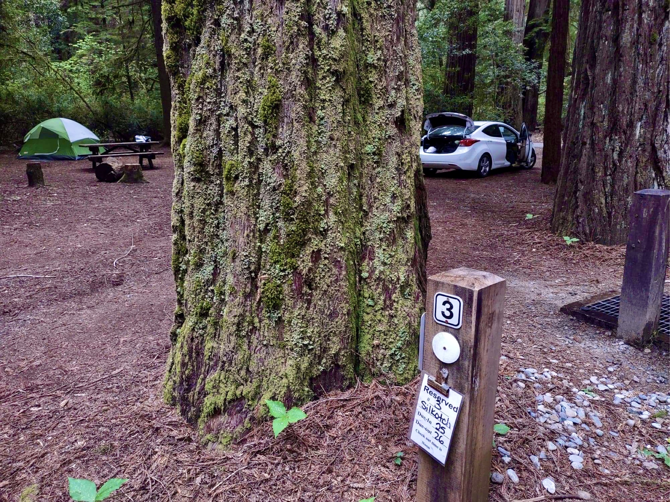 By now the shadows were lengthening and we were in danger of losing daylight. We hurried on to Jedediah Smith Campground, found our reserved site and set up camp in the forest-scented twilight.
