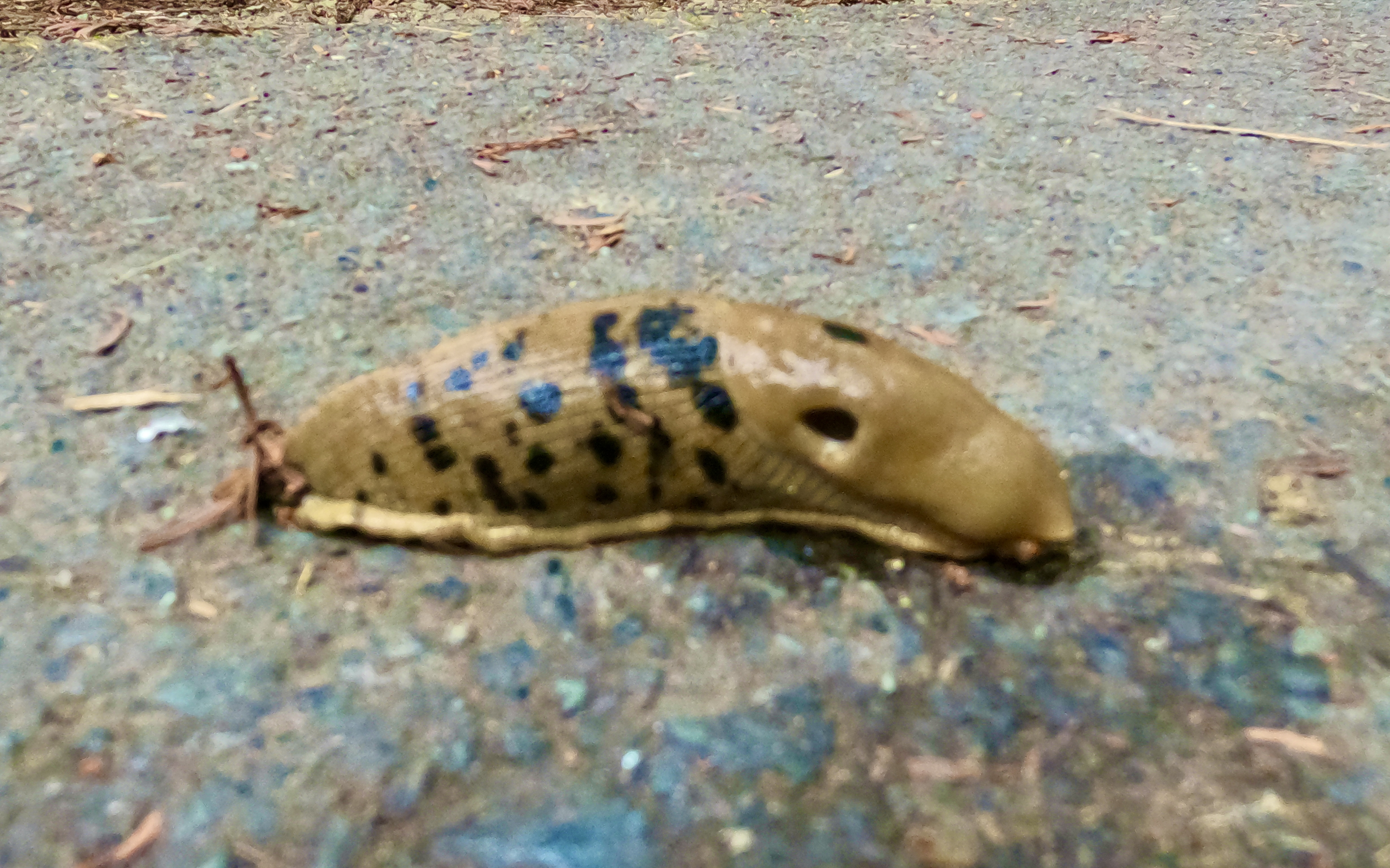 We took our time breaking camp, and dawdled to admire this absolute unit of a banana slug.