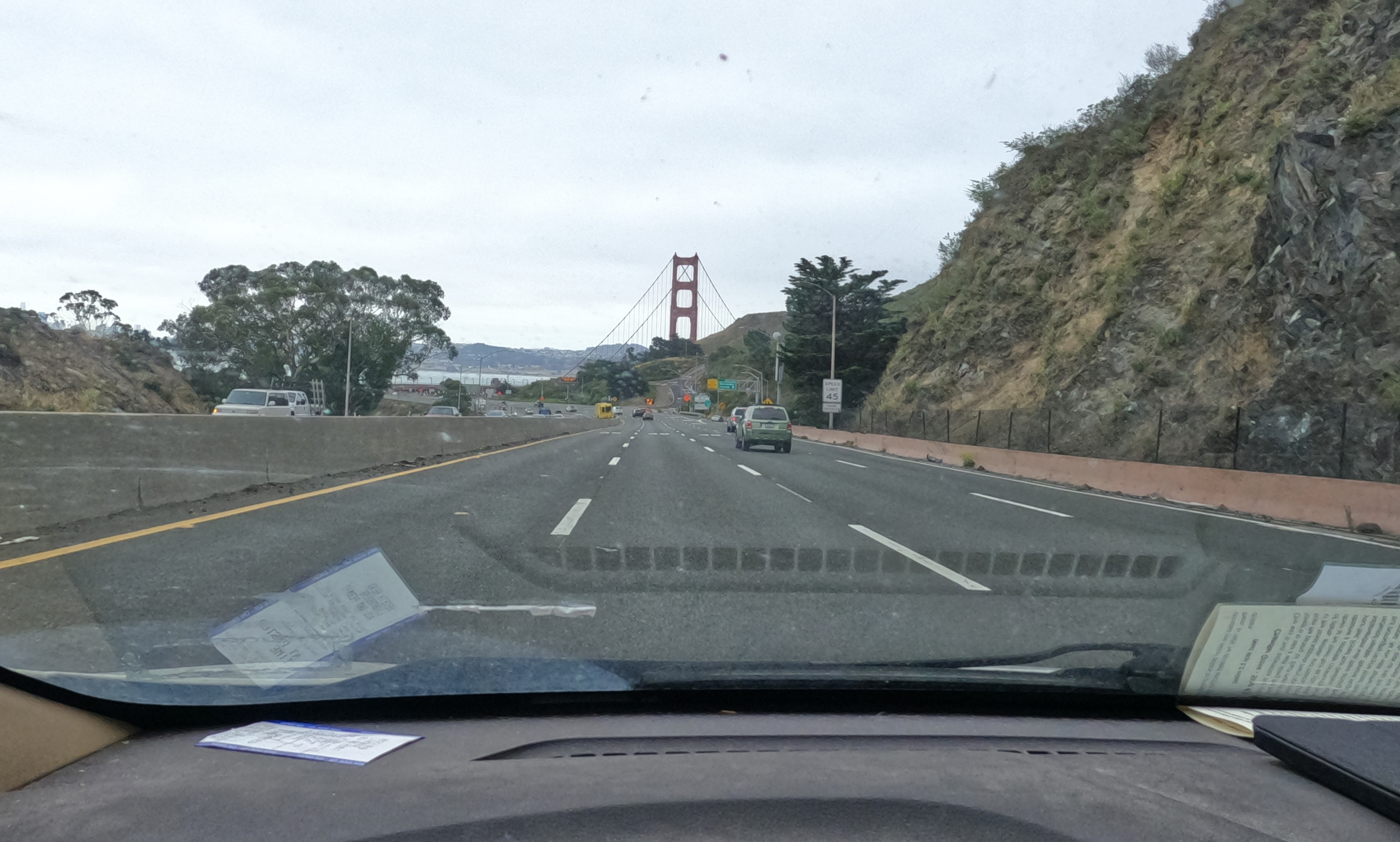 We made it almost, but not quite, to San Francisco that day. We spent the night at some unmemorable chain hotel in Santa Rosa whose name I don’t recall, and crossed the Golden Gate Bridge around 10am the next morning.
