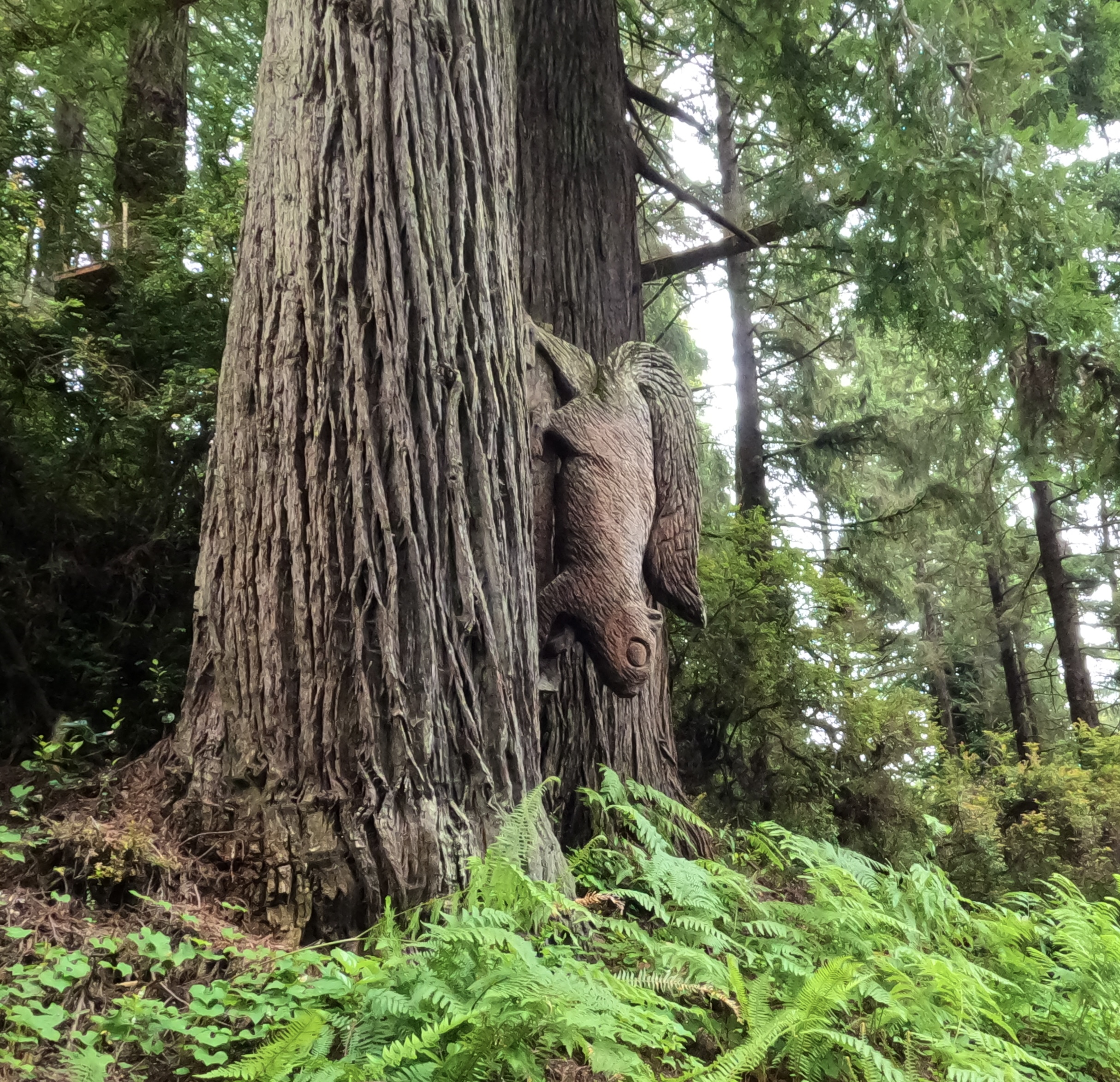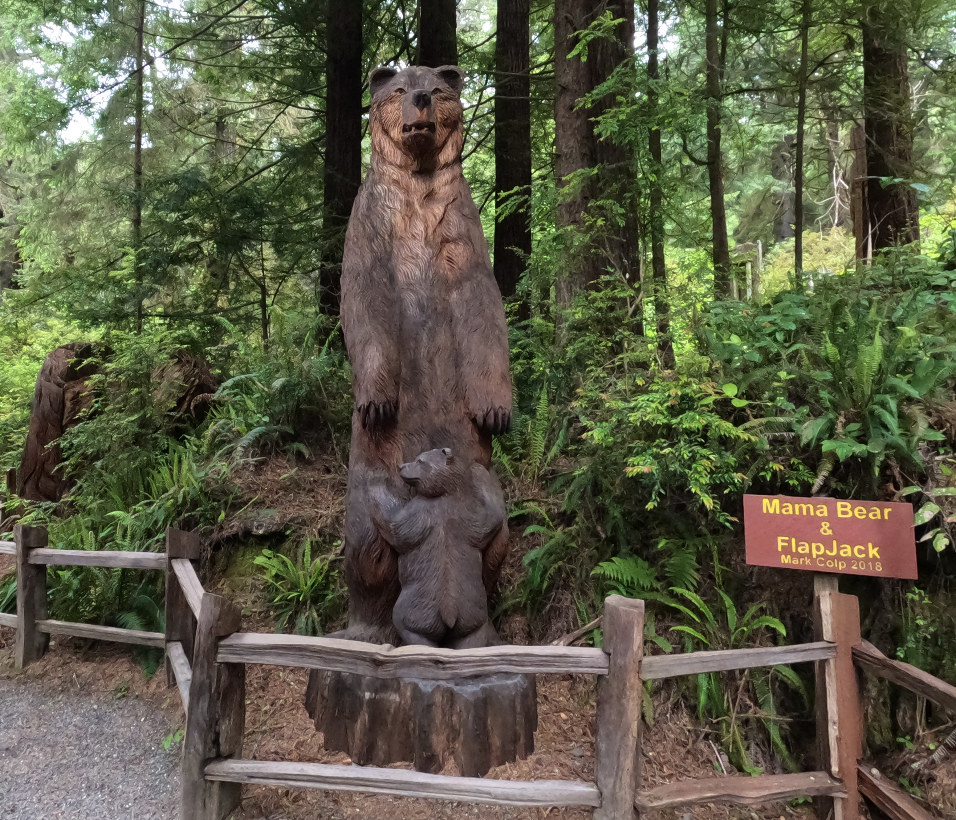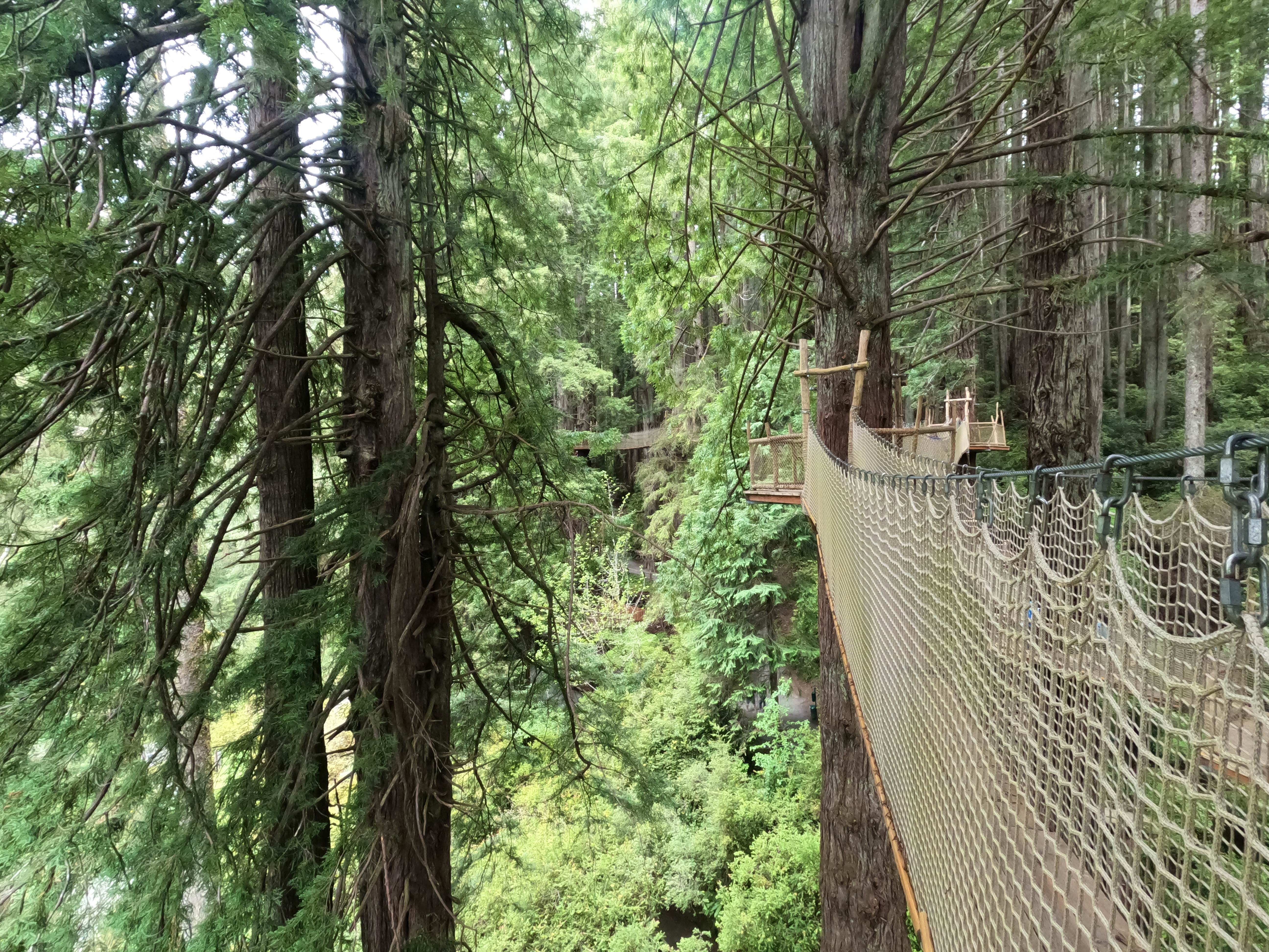 We weren’t at all sure what to expect there, but it was a pleasant surprise. Lots of great wood carvings, poetry, folk-style art, and a wonderful canopy trail that lets you walk through the redwoods 50 to 100 feet above the forest floor.