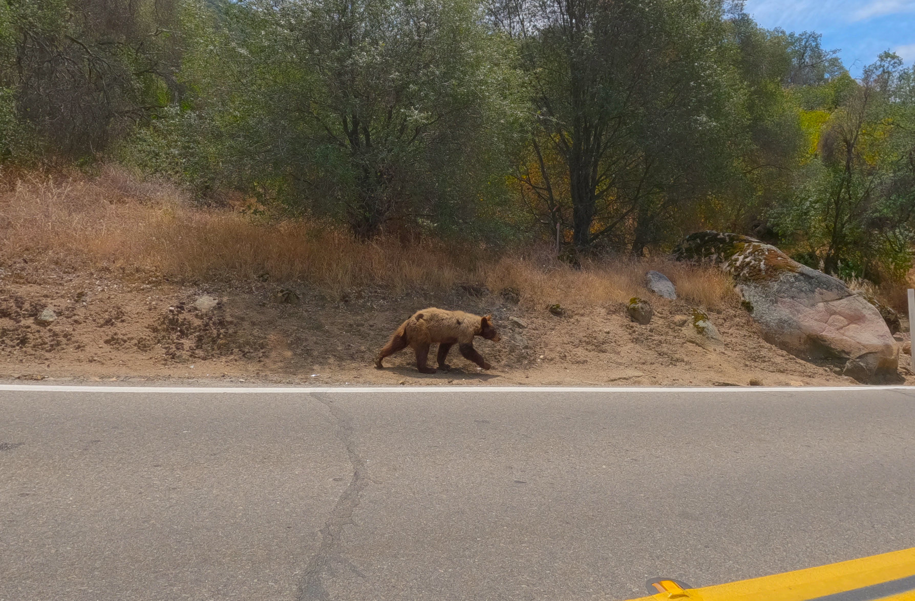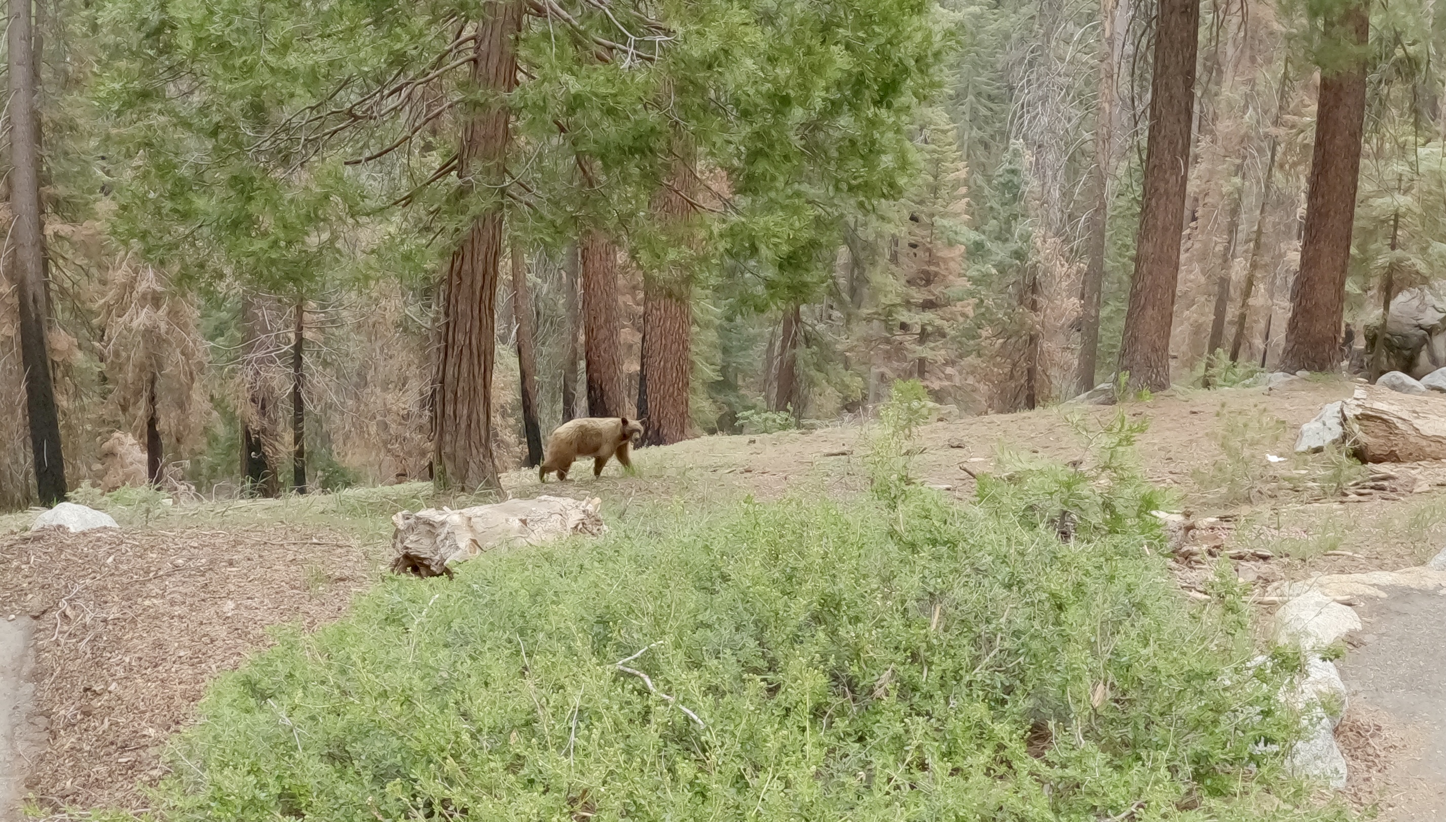 So we didn’t get to see the mighty General Sherman tree or do the other things we had planned in those parks, but we did get to marvel at some really big Sequoias, appreciate the majesty of the Sierra Nevadas and finally see some bears in the wild. We were satisfied.