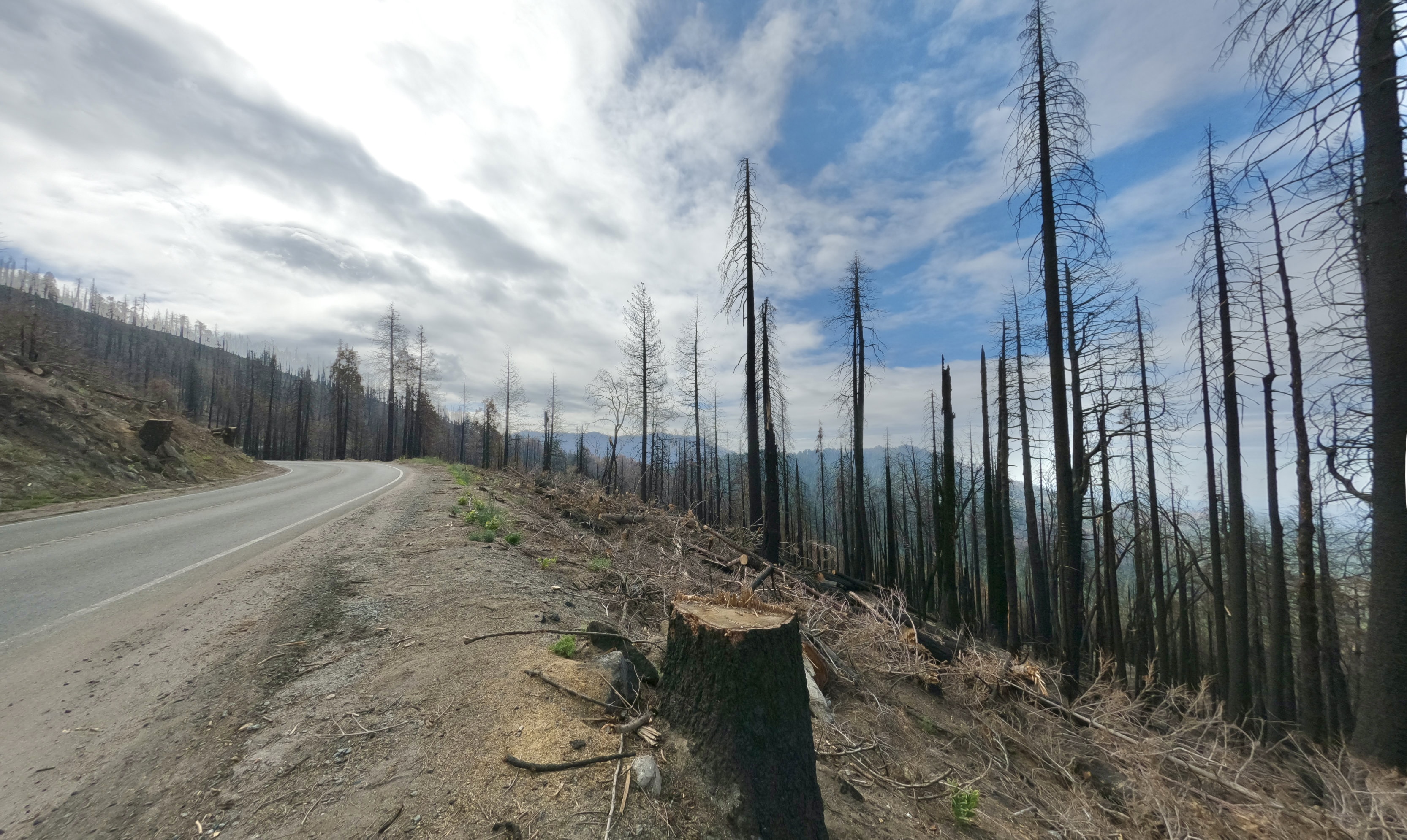 The trees here still show the scars of the big KNP Complex fire that tore through Kings Canyon and Sequoia National Parks last fall, the fire that provided the final motivation for this road trip.