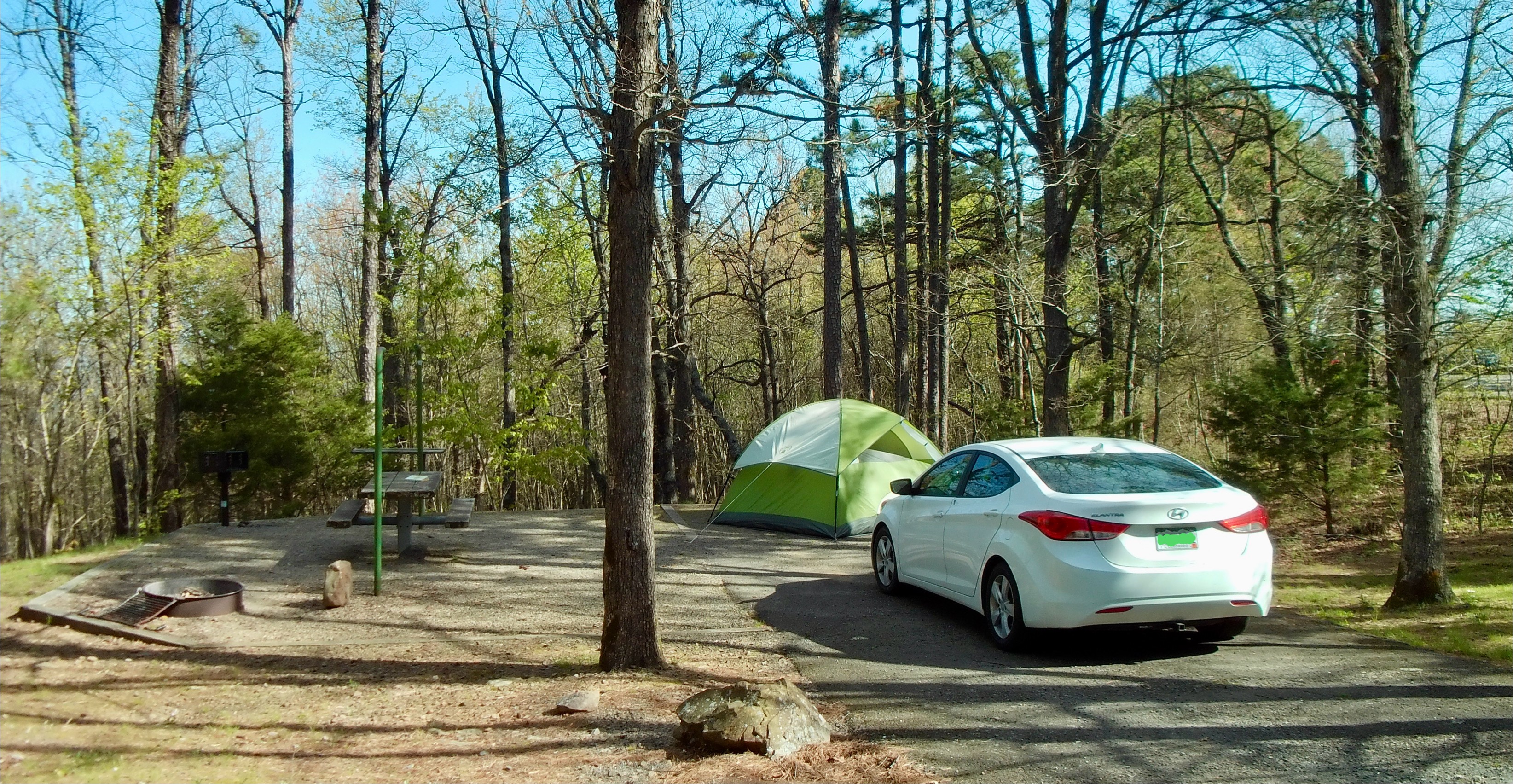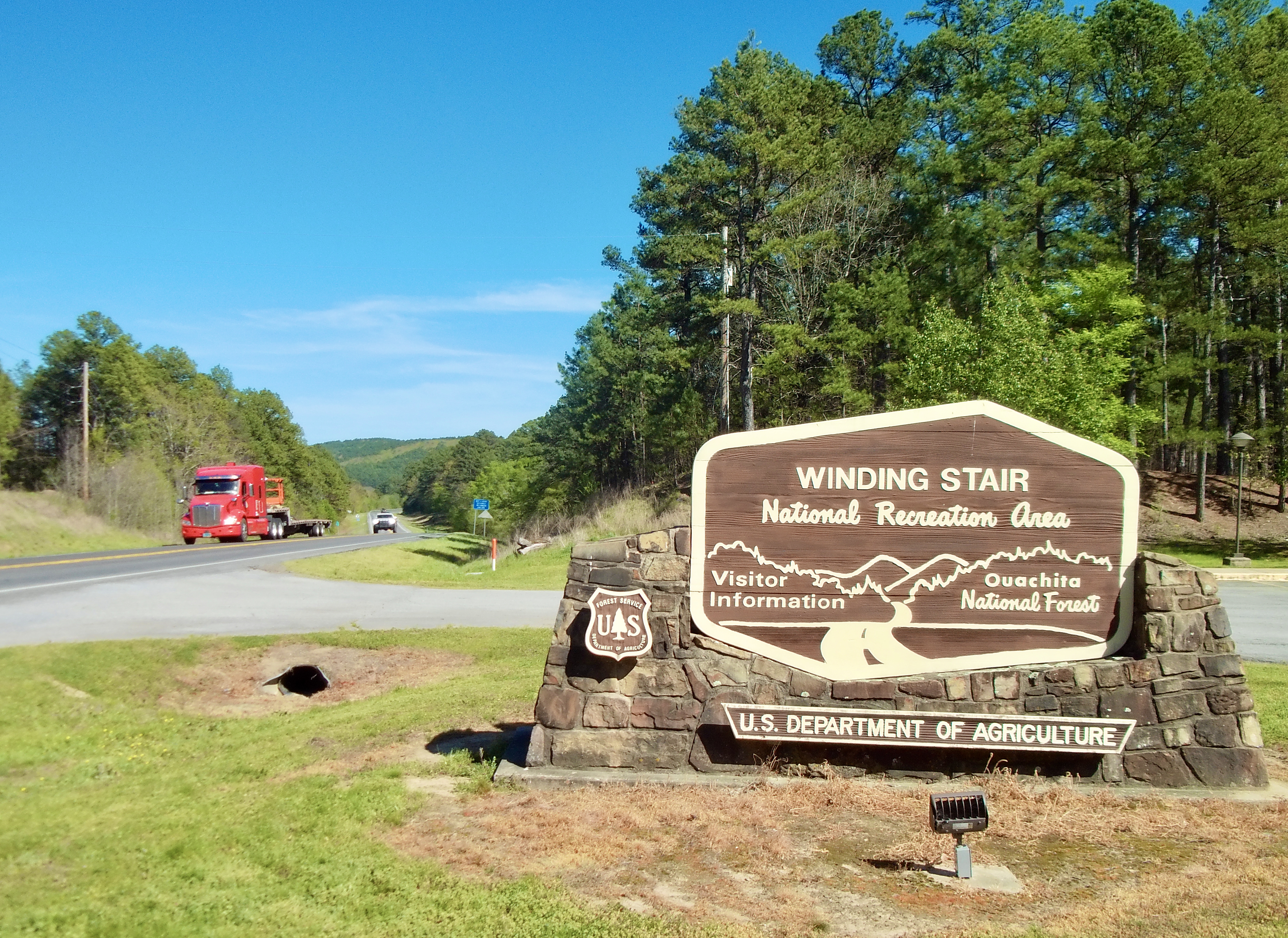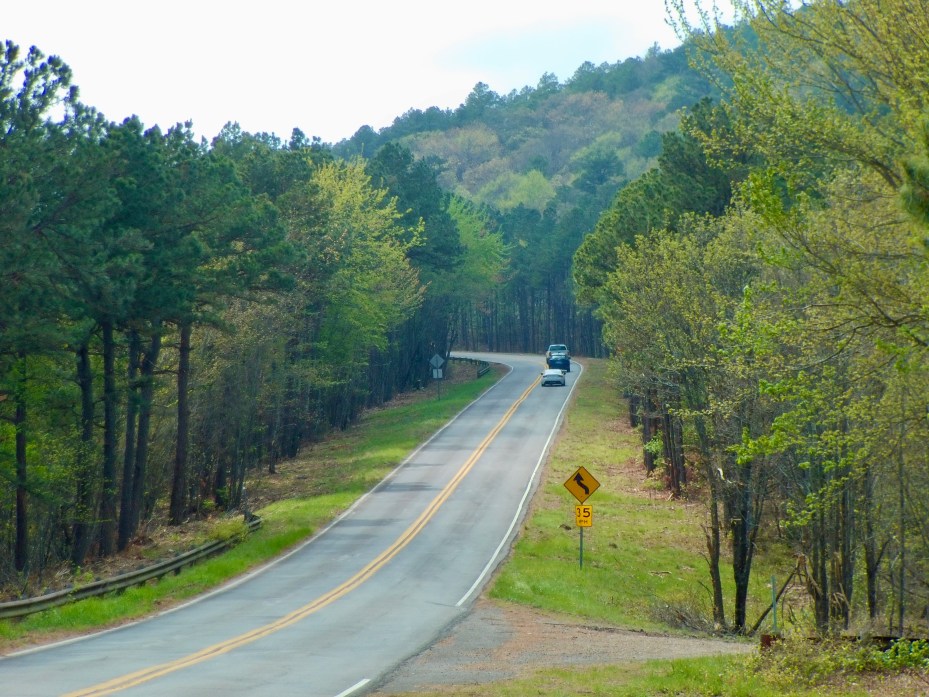 The last couple hundred miles of the trip finally started to get pretty. Lakes, rivers, grass, green trees. My campground was on Winding Stair Mountain in Ouachita National Forest (pronounced like Wichita, but Watchita).