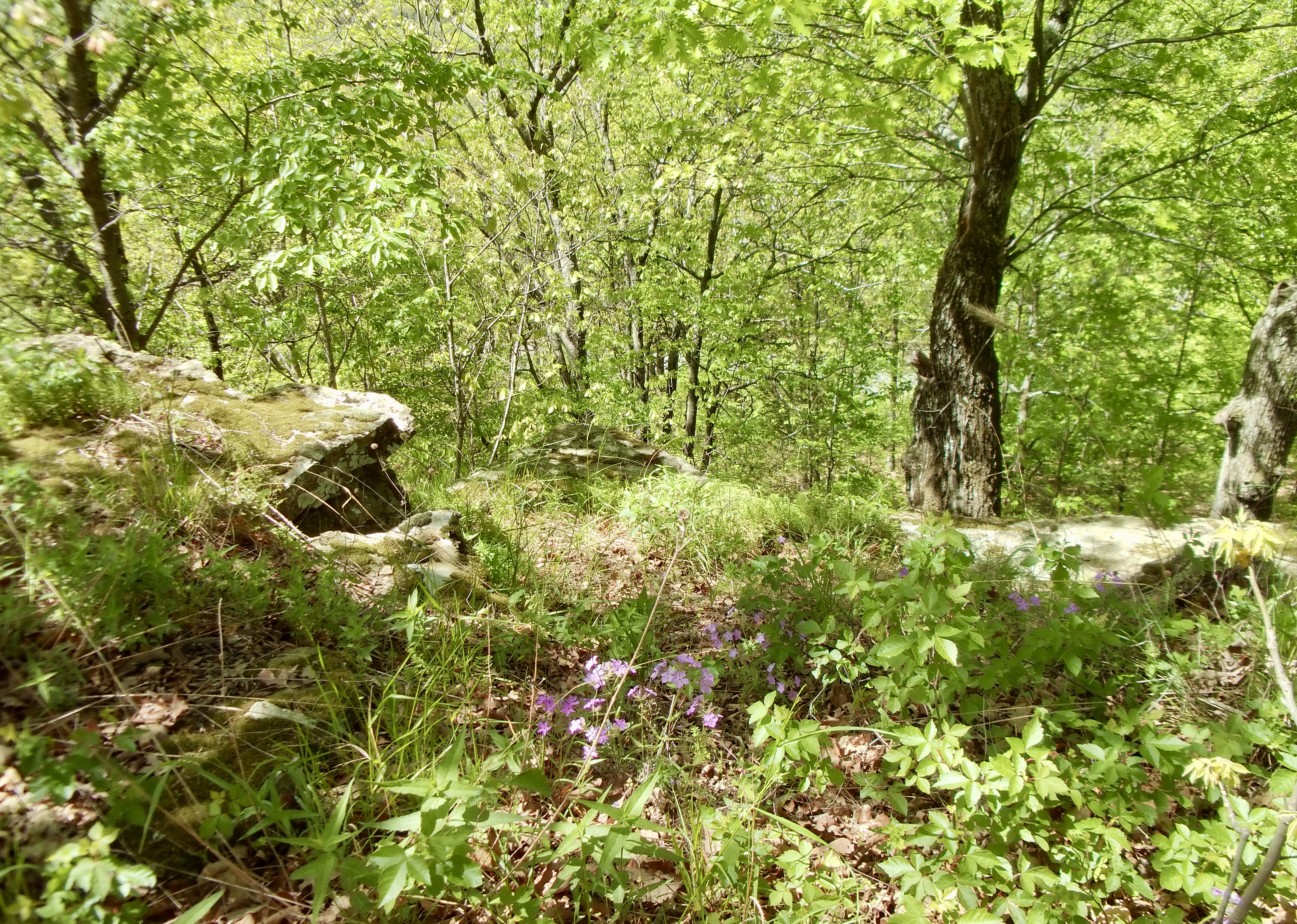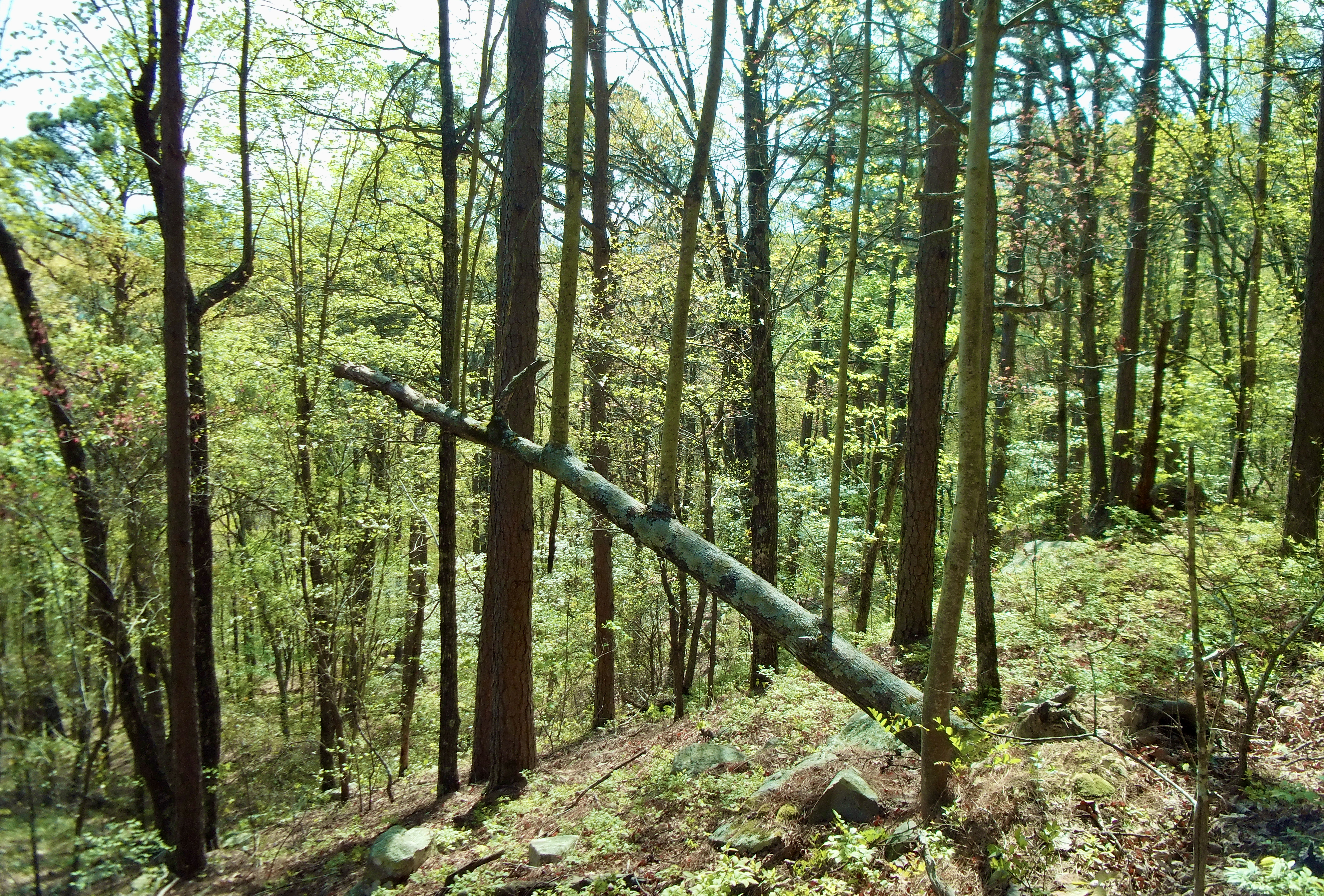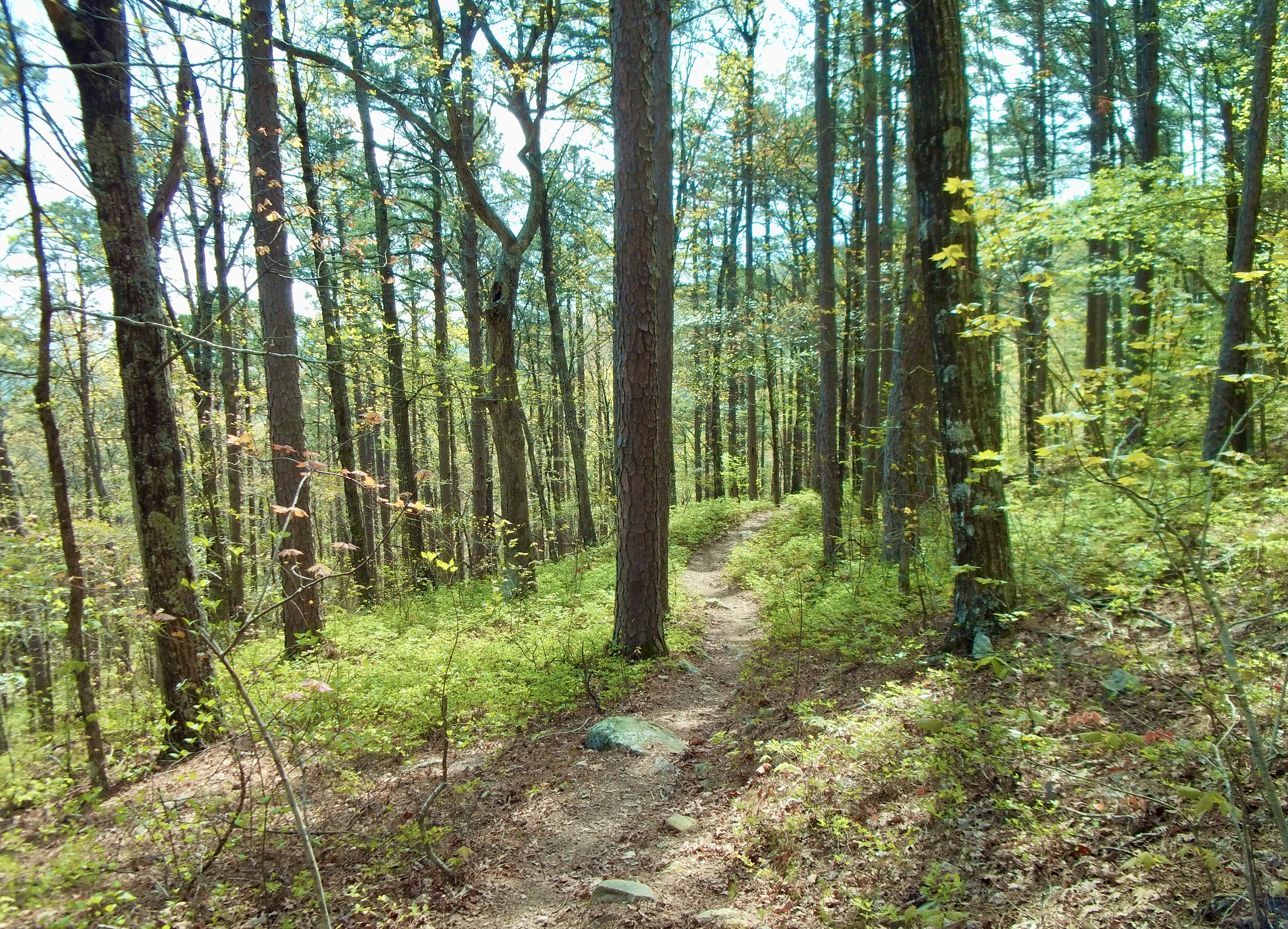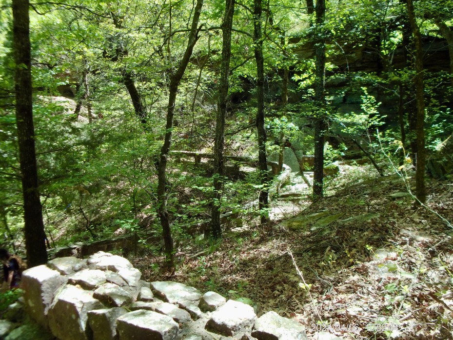 The trail followed the edge of a stone cliff overlooking a valley. It was a pretty trail with intermittently pretty views, depending on the density of the forest.