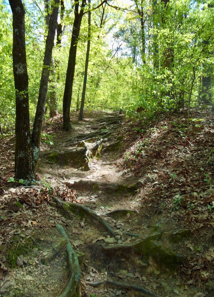 I went over to it, chugged some water from my Thermoflask, grabbed a t-shirt and went into the gift shop restroom to change out of my hot sweater. Thus refreshed, I picked up the trail on the other side of the parking lot and continued on.