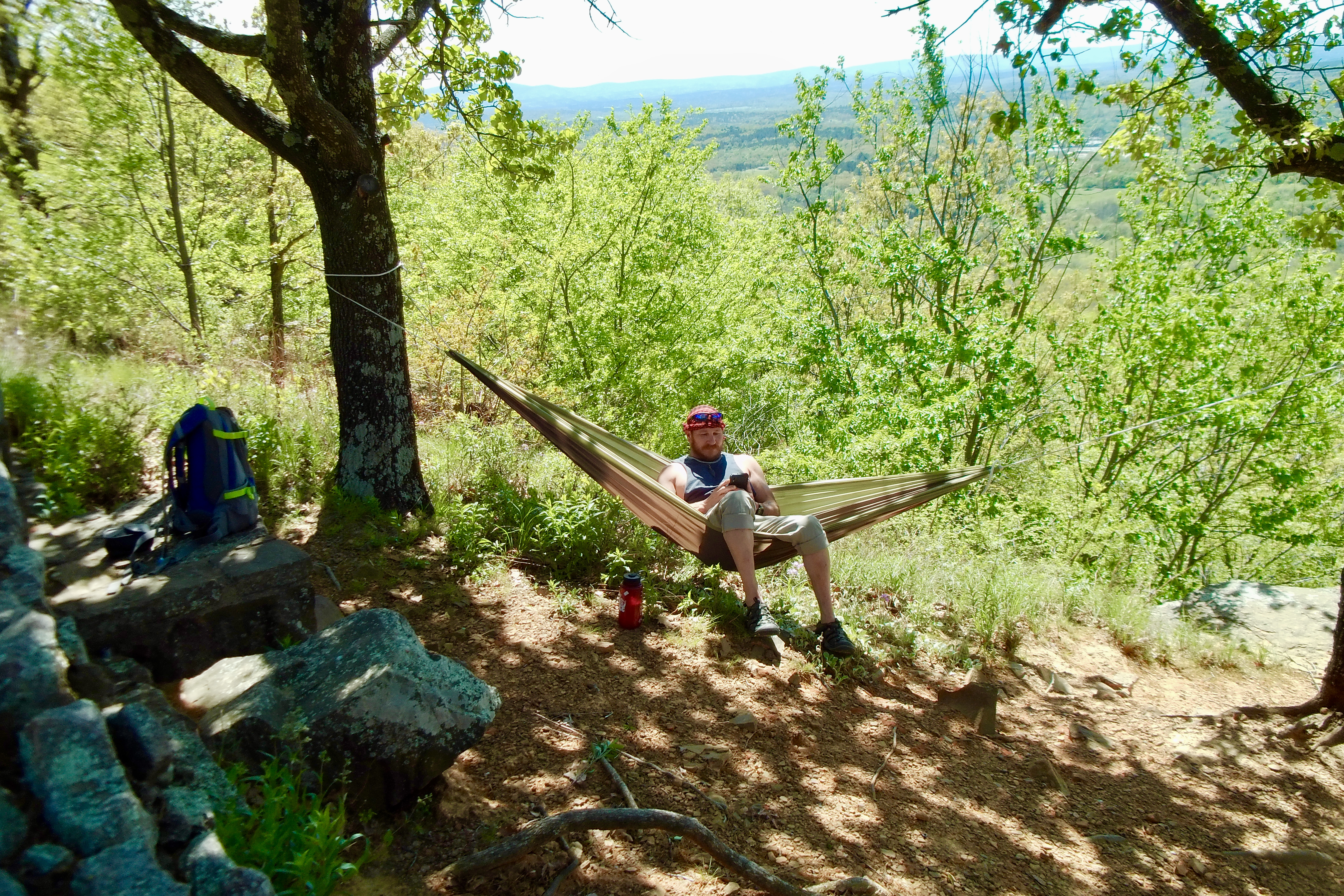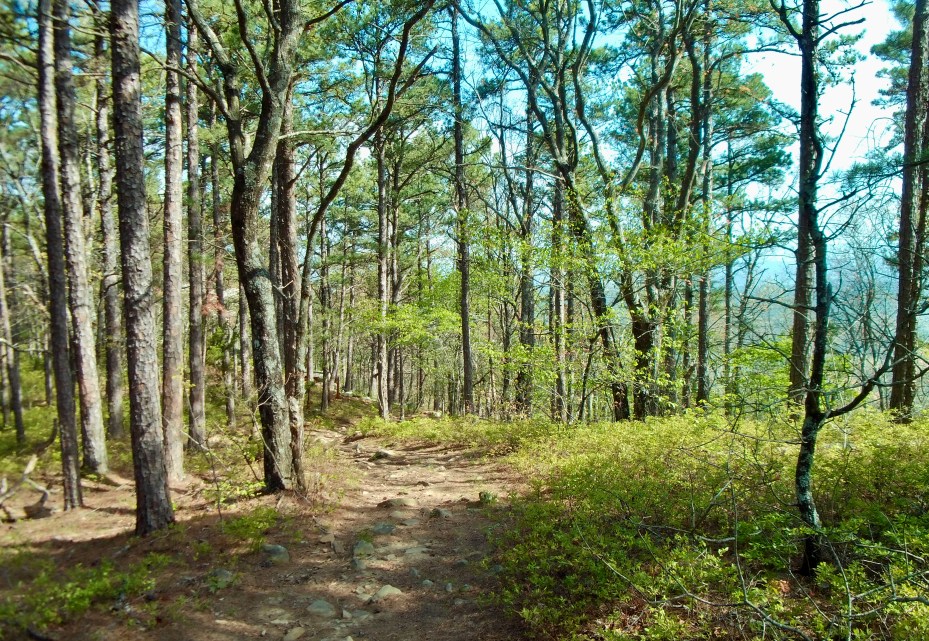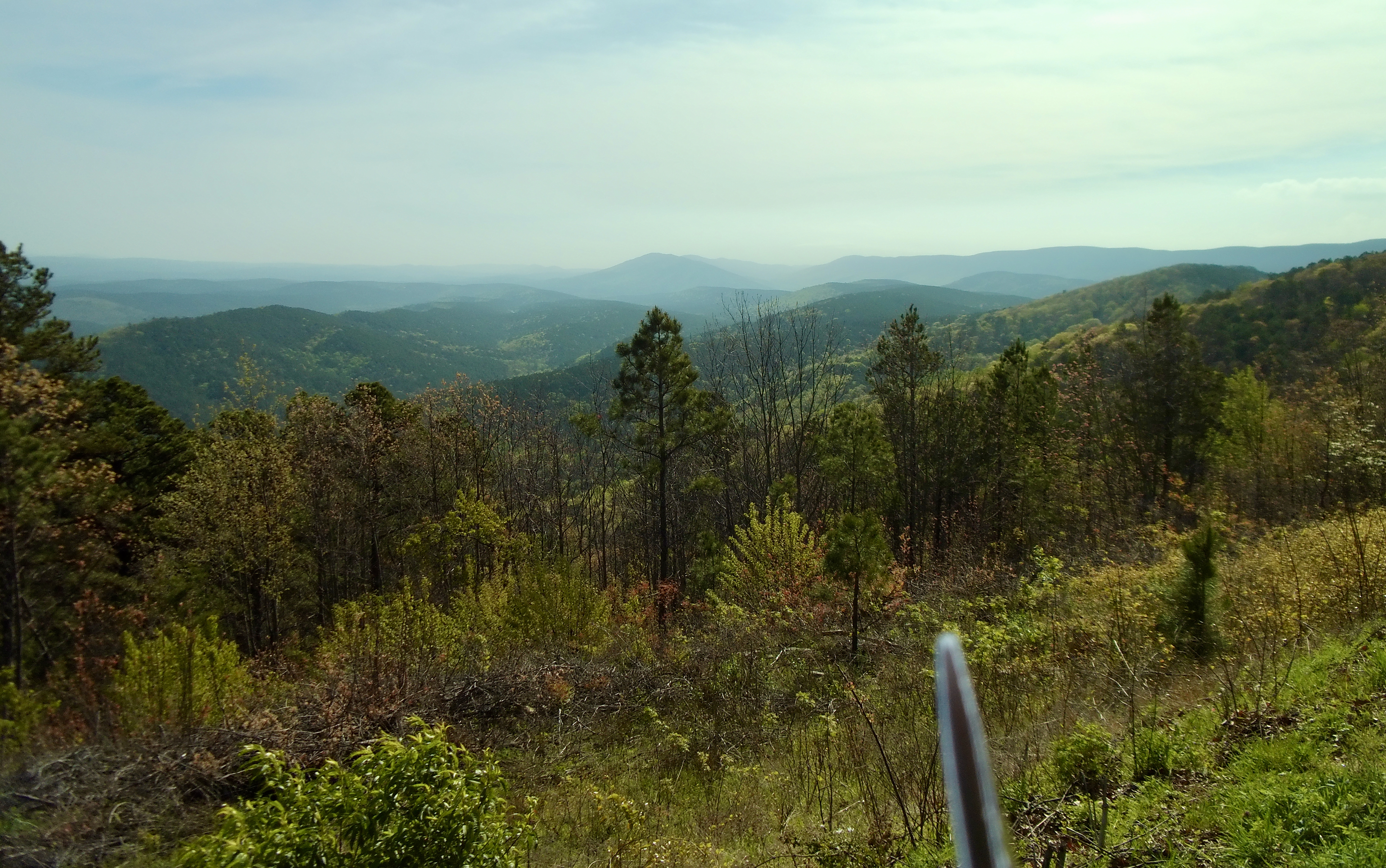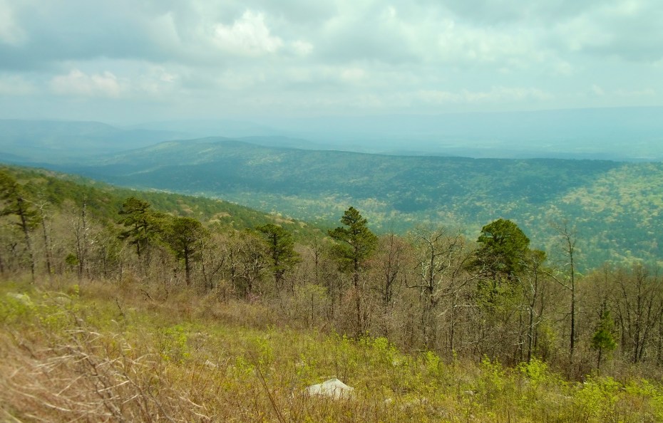 Once I had the tent safely guarding my campsite, I walked up to Emerald Overlook, where I planned to watch the eclipse. It has lovely views of Ouachita National Forest.