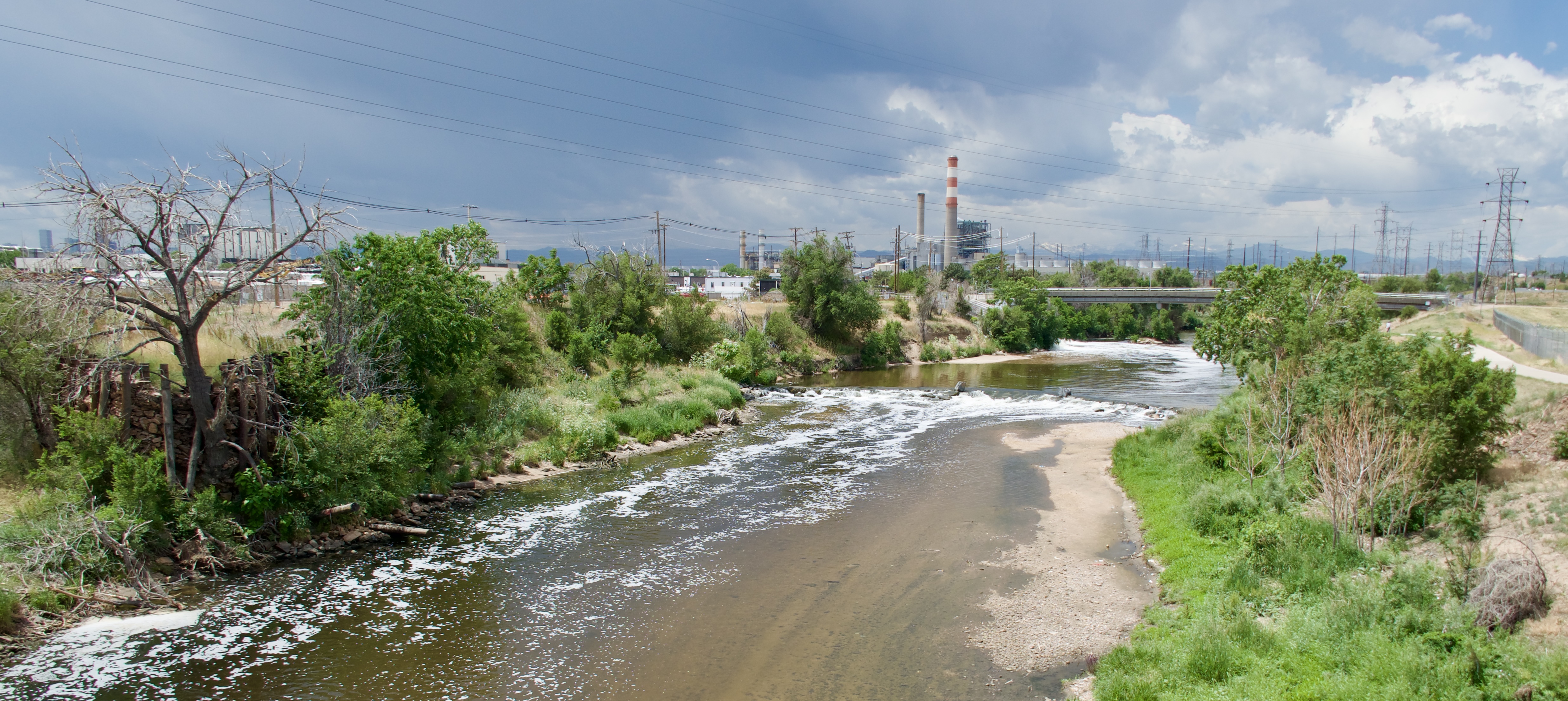 Eventually Sand Creek joined the South Platte River, against the scenic backdrop of a power plant smokestack. Good old Commerce City.