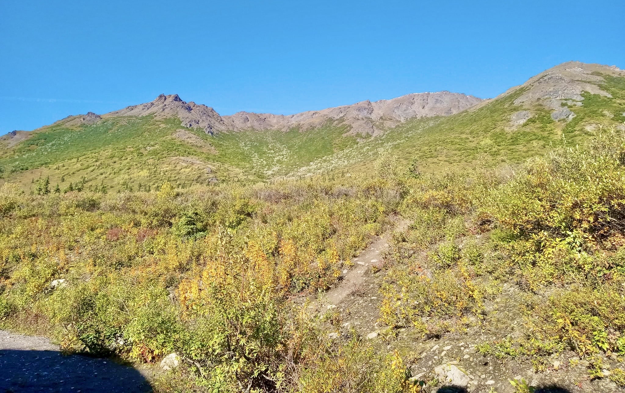 He spent the night at a hostel in Denali. In the morning he took a shuttle into Denali National Park, and did some exploring in the wilderness.
