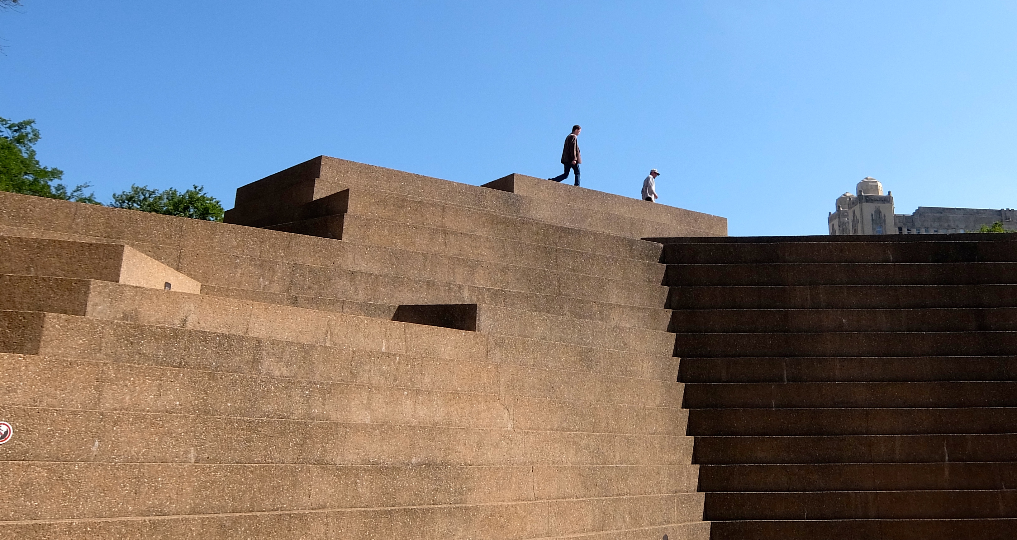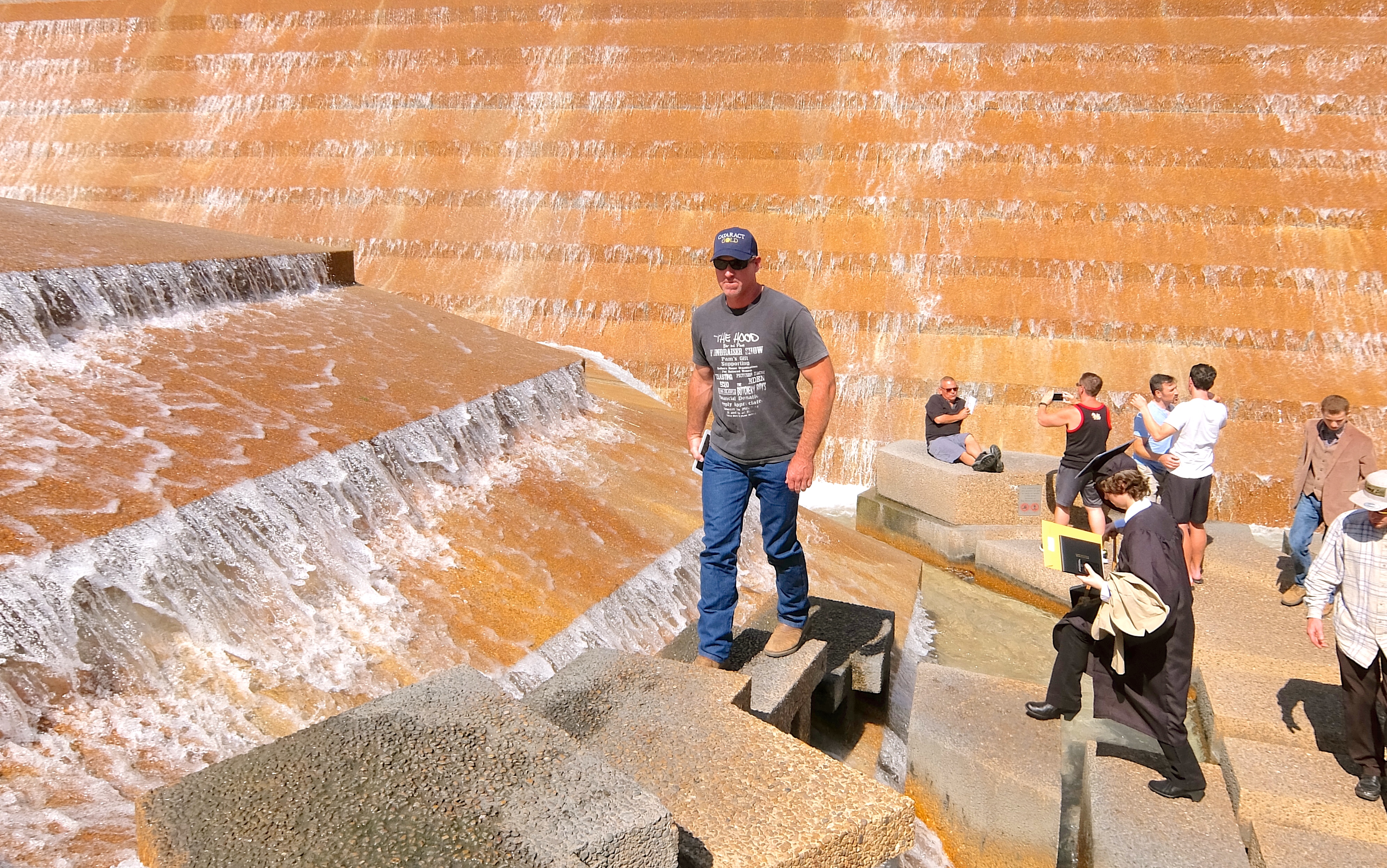 The Water Gardens are kind of surreal. They’re designed to resemble a wilderness of canyons, mountains, lakes and rivers, represented in stark, geometric lines.