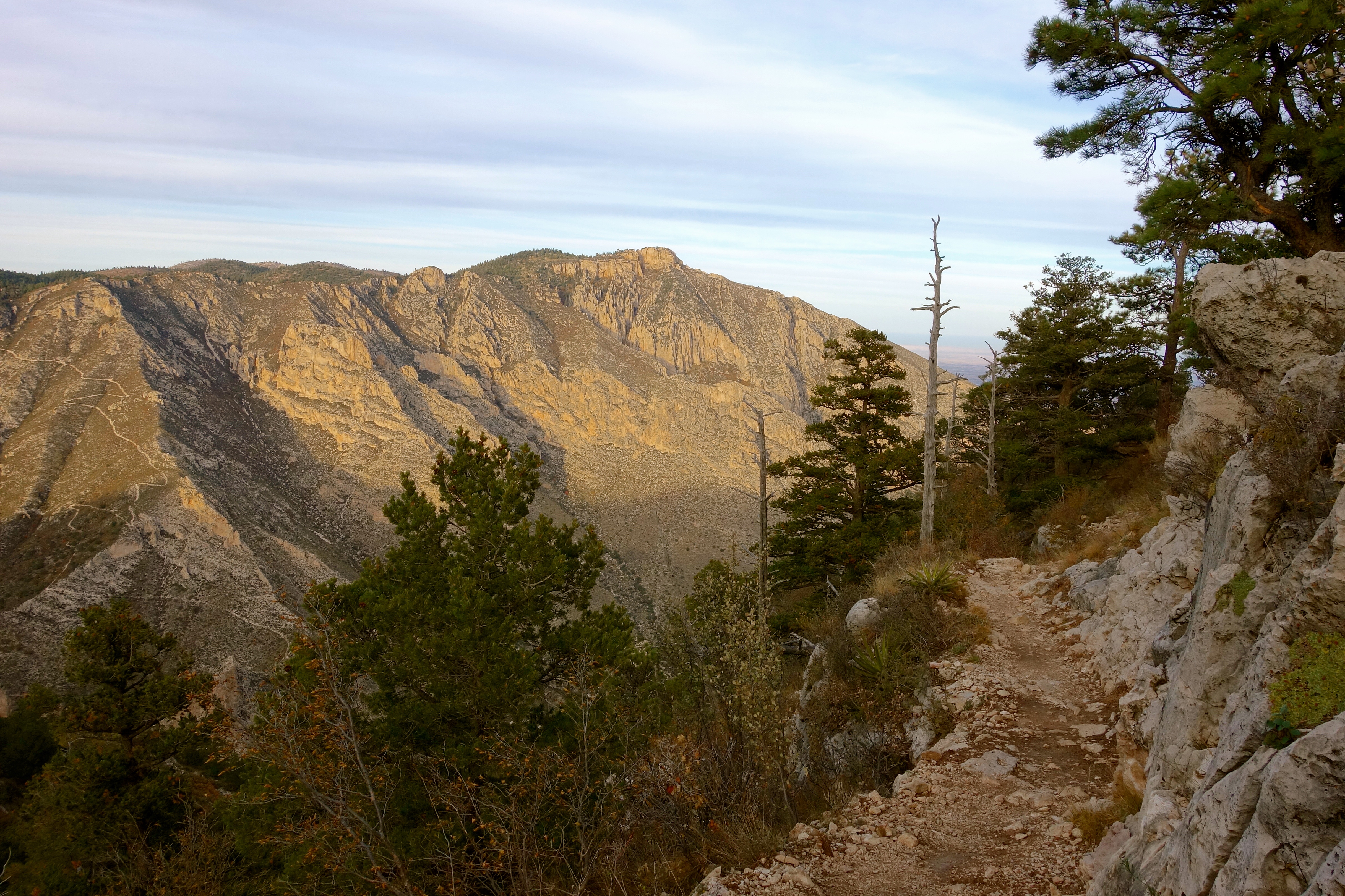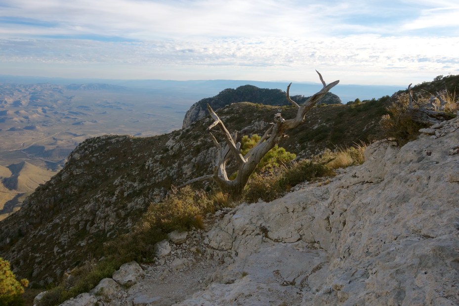 We climbed Guadalupe Peak mostly in sunshine, and descended in deepening shadows.