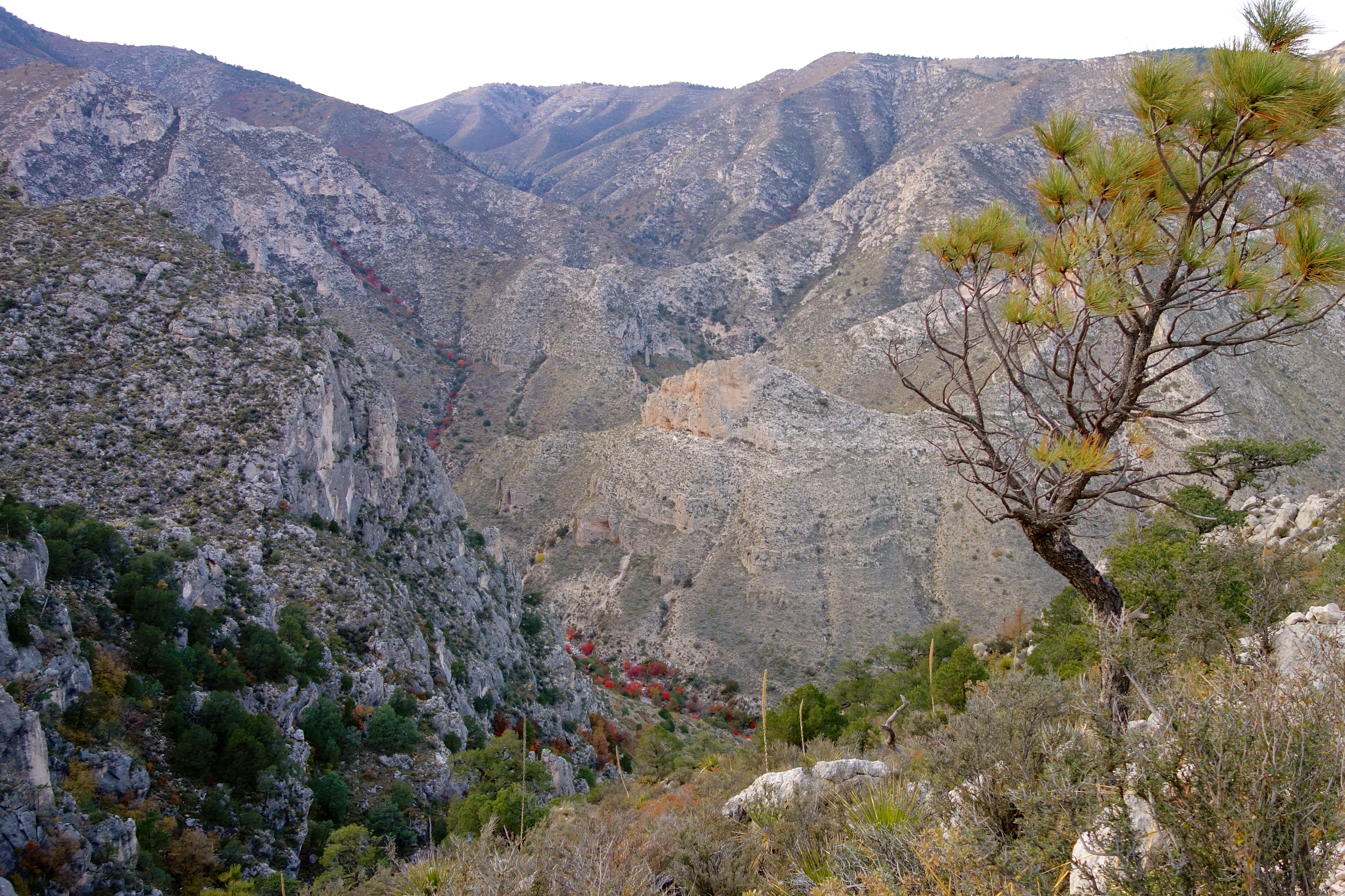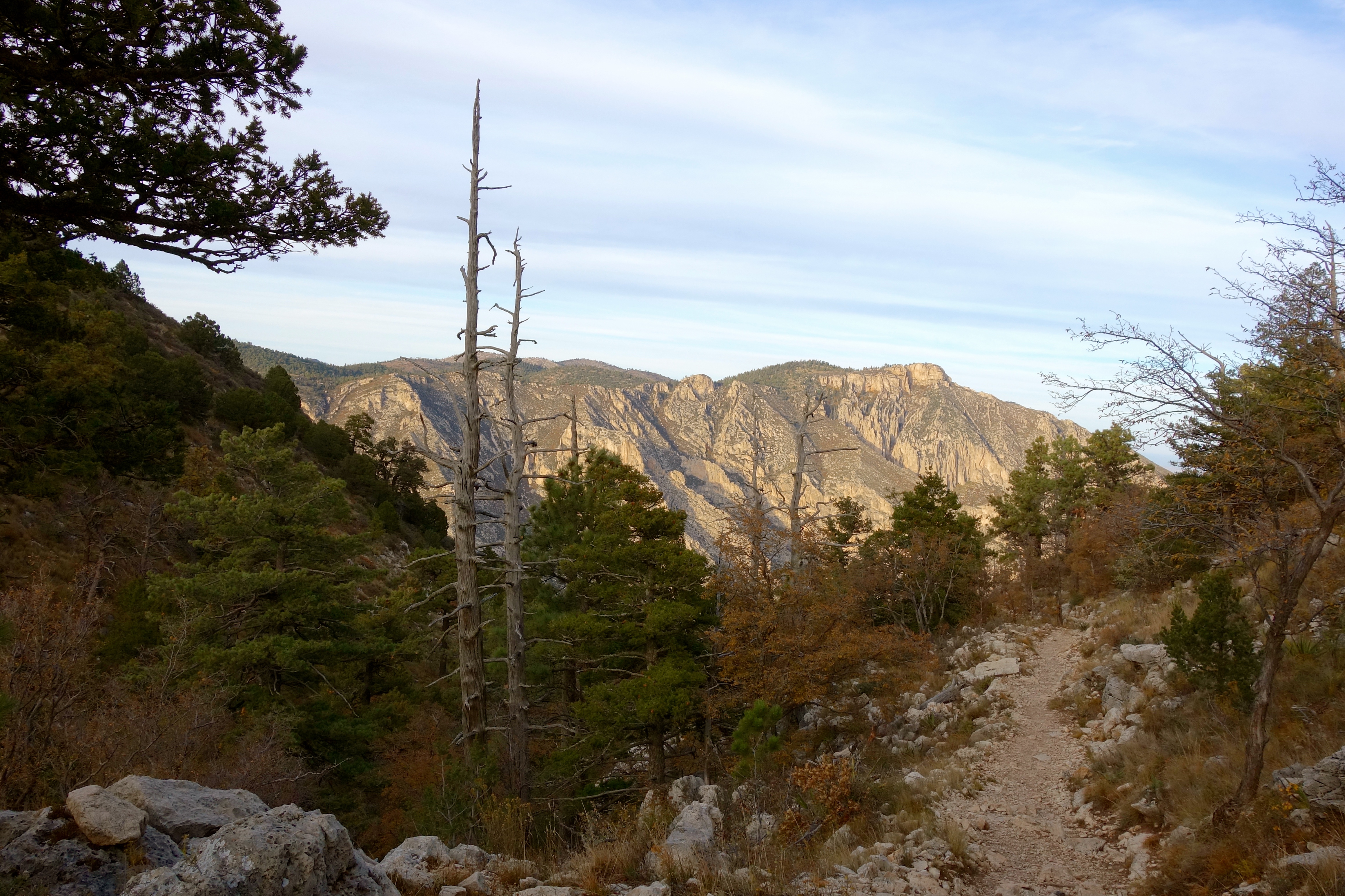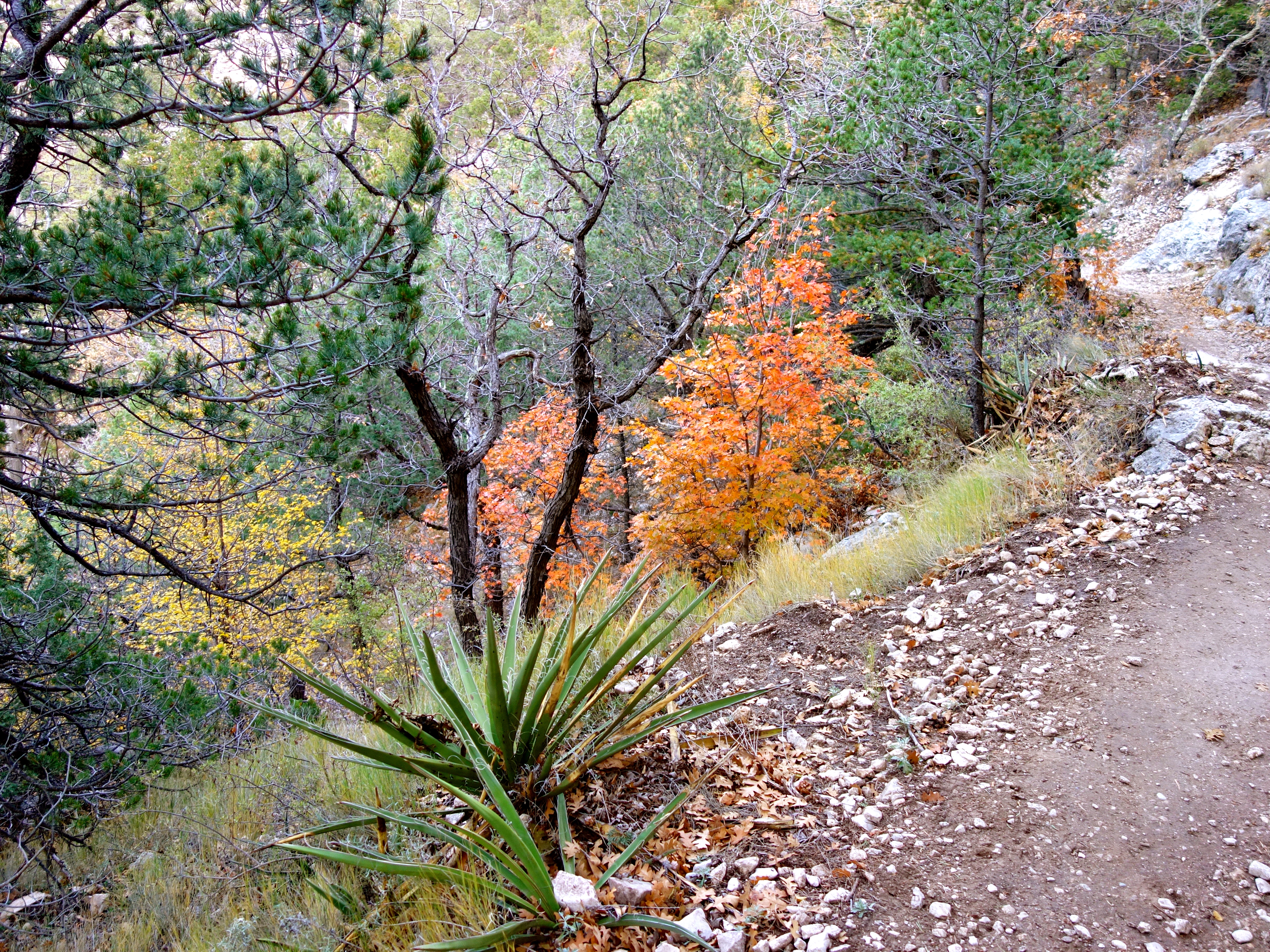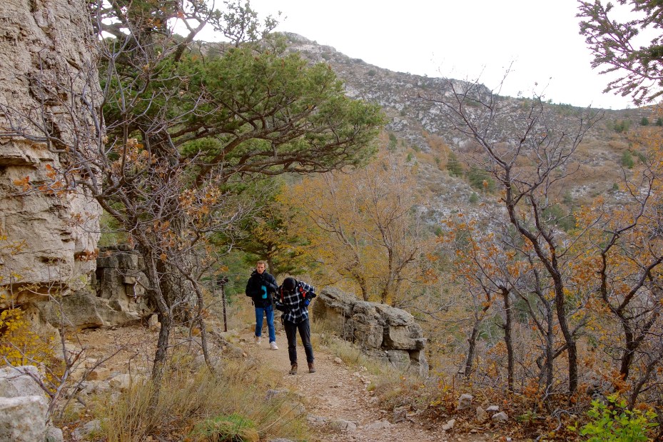 The plan was simple: Get off work the Friday afternoon of Veterans Day weekend, load up the car, take a nap, then drive eight hours northeast to Guadalupe Mountains National Park. Arrive around sunrise. Spend Saturday adjusting to the 5,700+ ft elevation and enjoy a brilliant show of fall color on the Devil’s Hall trail. On Sunday, climb to the summit of Guadalupe Peak, the highest point in Texas at 8,751 feet above sea level. Drive home on Monday.